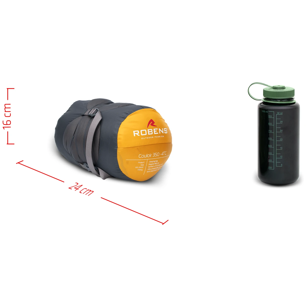 El saco de dormir de plumas Couloir 350 -4°C Regular de la marca Robens está diseñado para usarse desde primavera hasta finales de otoño.