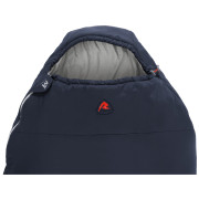 La cómoda forma de momia mejora el aislamiento térmico y la libertad de movimientos al mismo tiempo. La zona alrededor de los pies tiene una forma especial de aleta de tiburón, para que las piernas puedan permanecer estiradas en su posición natural durante la noche. Otras características del saco de dormir incluyen una capucha retráctil, un bolsillo interior para objetos de valor y trabillas para colgar y secar el saco de dormir. Paquete de transporte por compresión para componentes.