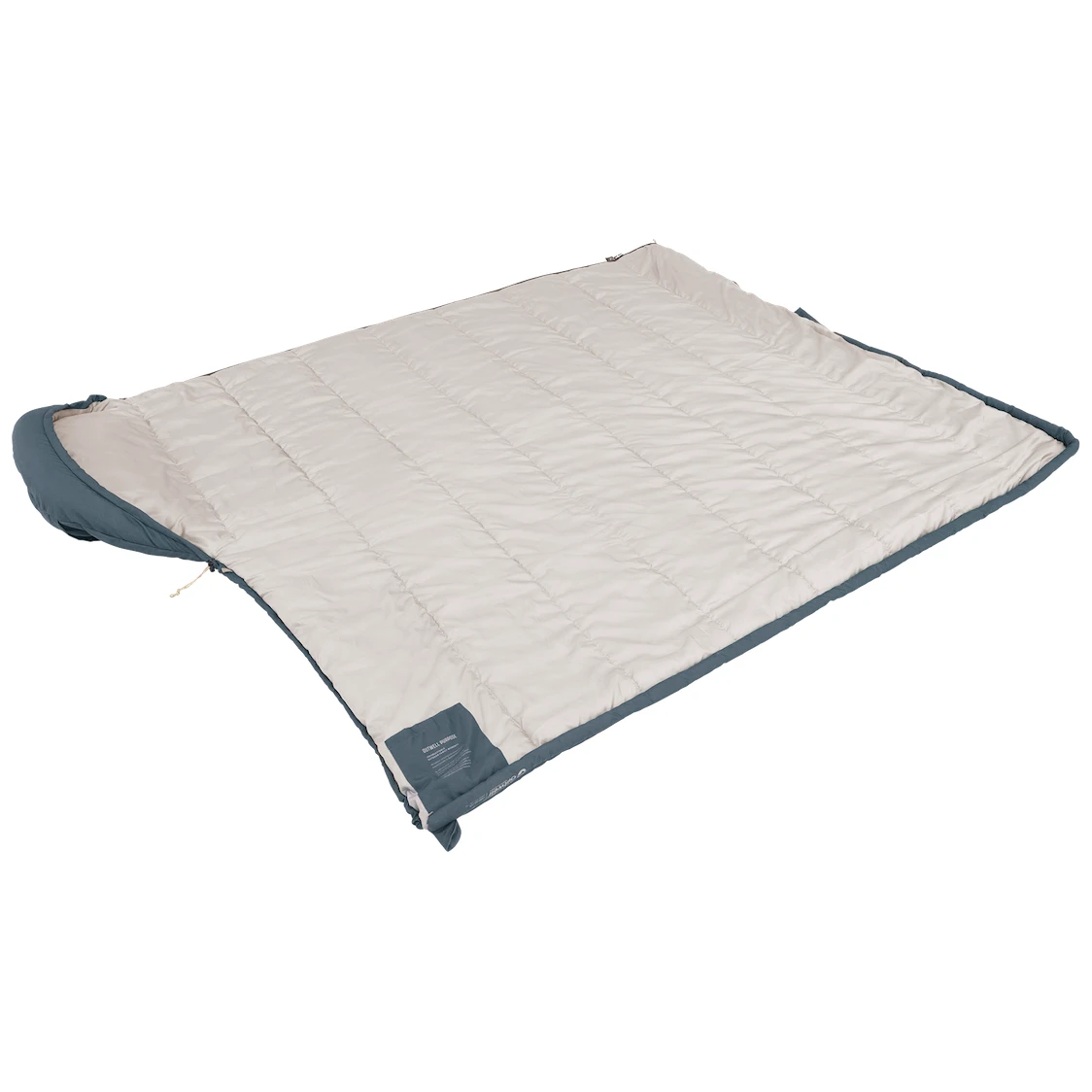 El relleno es un material Isofill reciclado hecho de finas fibras huecas altamente siliconadas para un tacto extra suave. El saco de dormir es de doble capa, donde el aislamiento se distribuye en dos capas separadas para un máximo confort térmico, y éstas también están ligeramente desplazadas para ayudar a eliminar la creación de puntos fríos. Se puede abrir para crear una manta. La cómoda noche también se ve favorecida por la almohada extraíble incorporada.