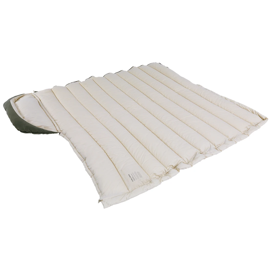 El saco de dormir se puede abrir fácil y rápidamente gracias a la cremallera bidireccional YKK de alta calidad, lo que lo convierte en una manta espaciosa. La cremallera del saco de dormir está cubierta con una solapa, por lo que no hay fugas de calor innecesarias. Para una máxima comodidad en el modo manta, también apreciarás la capuchina extraíble con almohada extraíble. En las esquinas hay ganchos en los que se puede introducir directamente el saco de dormir para aumentar las condiciones de higiene y prolongar la vida útil del saco. El paquete también incluye una práctica funda de compresión cuadrada que facilita el transporte del saco de dormir.