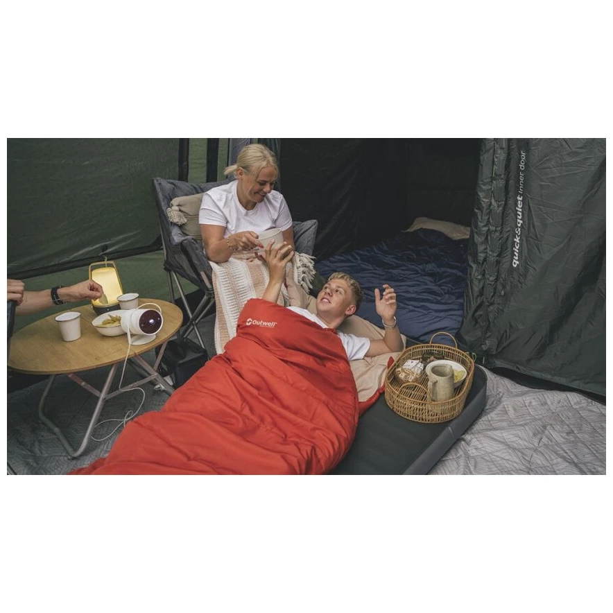 El saco de dormir Contour Lux tipo manta de la marca danesa Outwell garantizará un sueño agradable en el camping, comparable al de la comodidad de tu hogar.