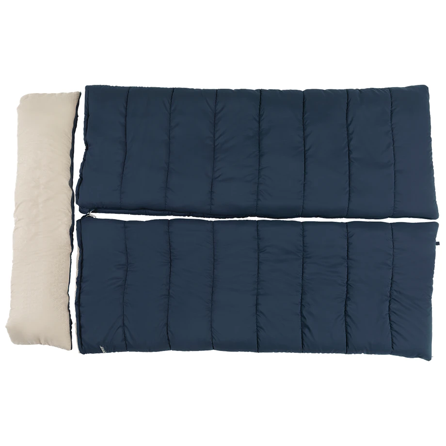 Saco de dormir tipo manta para dos personas Contour Lux Double de la marca danesa Outwell garantizará un sueño agradable en el camping, comparable al sueño en la comodidad de su hogar.
