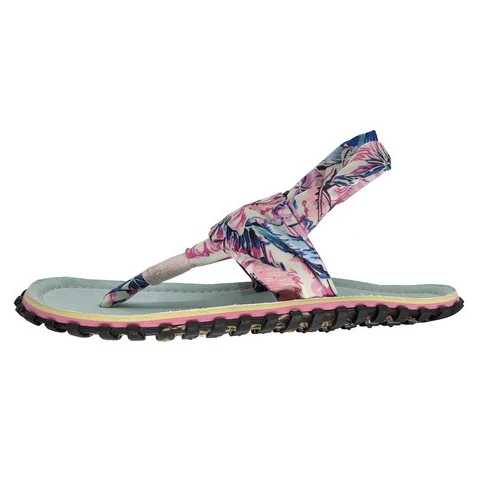 Las sandalias de mujer Slingback Mint & Pink de la marca Gumbies son representantes de una nueva línea, desarrollada con énfasis en una mayor comodidad durante largas caminatas. Aportamos una combinación de la probada suela anatómica hecha de reciclados y yute con una parte superior de nuevo desarrollo más cómoda. La correa en pulgadas y la correa alargada del tobillo de fibra ultrafina se complementan con una tira textil que rodea toda la espinilla, similar a la de las sandalias.