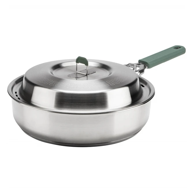 La sartén Gerber ComplEAT Sauté Pan es una sartén de acero inoxidable de alta calidad con un diámetro de 10" (254 mm) que ofrece un rendimiento fiable tanto en la naturaleza como en casa en el jardín. Gracias a la innovadora tecnología 3-ply, el calor se distribuye uniformemente por toda la superficie de la sartén sin puntos calientes molestos, lo que garantiza excelentes resultados al cocinar.