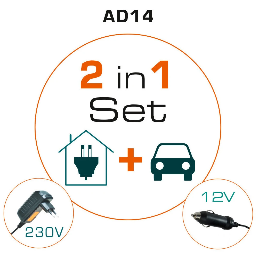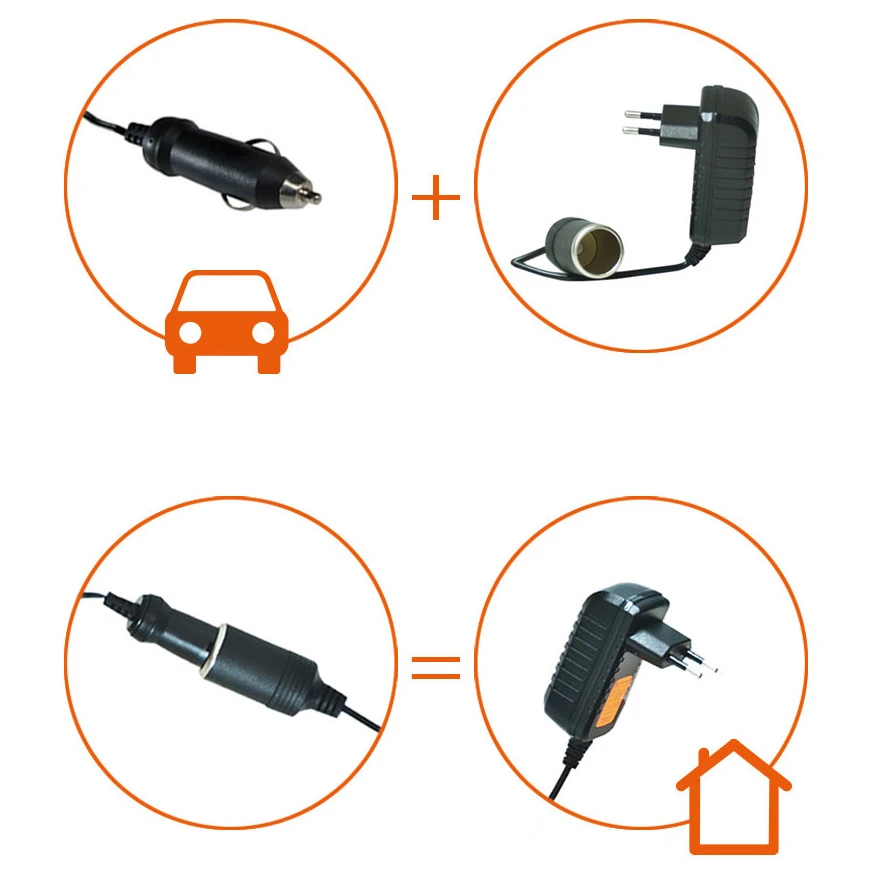 - set 2 en 1: alimentación mediante cable de 12 V con enchufe para el coche y enchufe de 230 V