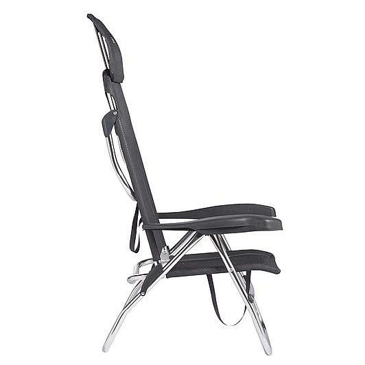 Silla muy cómoda Compact AL-223 de la empresa Crespo, que puedes transformar fácilmente en tumbona. El montaje y desmontaje de la tumbona es muy sencillo y puede hacerlo cualquiera. La estabilidad la proporciona una estructura de aluminio resistente y ligera con una capacidad de carga de hasta 110 kg, que se complementa con una cubierta. El respaldo es ajustable en 7 posiciones diferentes.