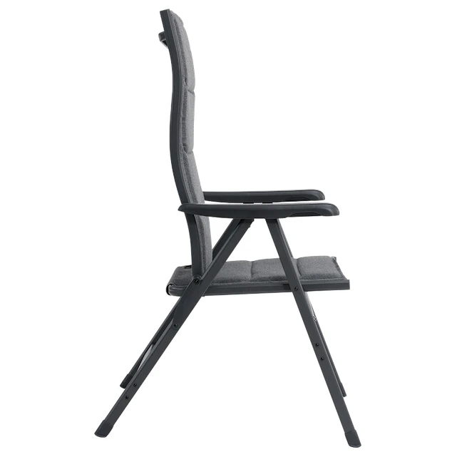 El grueso acolchado de poliéster cepillado aísla bien del frío , tiene una excelente solidez del color y resistencia a la radiación UV. Está complementado con una estructura de aluminio ligera y de alta calidad. Esta es una garantía de durabilidad. El cierre de seguridad evitará que se pliegue de forma no deseada. La silla tiene reposabrazos cómodos y un respaldo ergonómico alto para un soporte óptimo del cuello. El respaldo se puede ajustar en una de las siete posiciones.