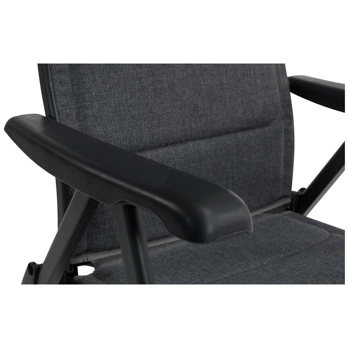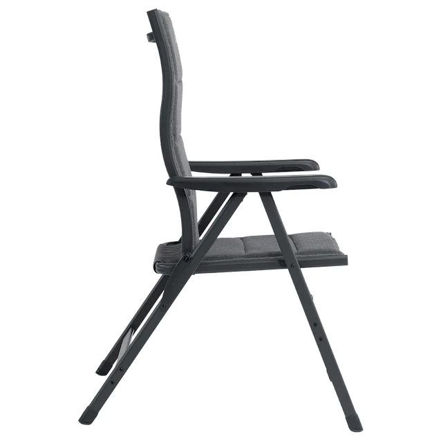 El grueso acolchado de poliéster cepillado aísla bien del frío , tiene una excelente solidez del color y resistencia a la radiación UV. Está complementado con una estructura de aluminio ligera y de alta calidad. Esta es una garantía de durabilidad. El cierre de seguridad evitará que se pliegue de forma no deseada. La silla tiene reposabrazos cómodos y un respaldo ergonómico alto para un soporte óptimo del cuello. El respaldo se puede ajustar en una de las siete posiciones.