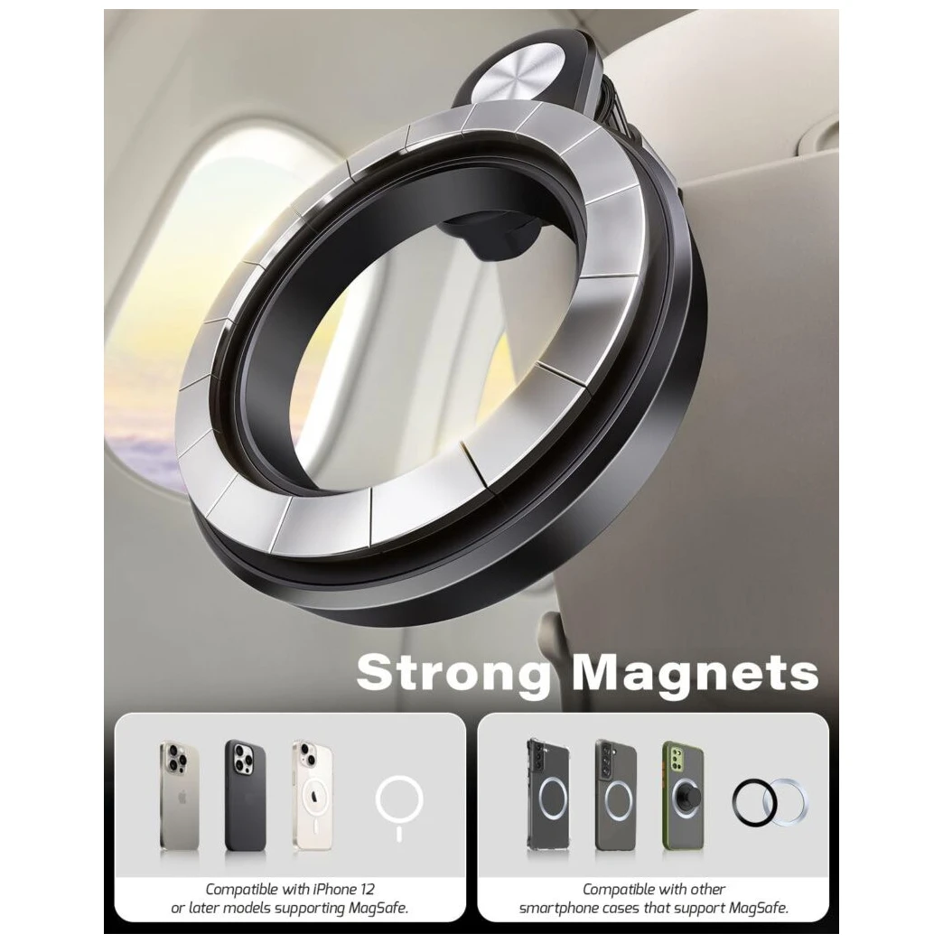 El soporte Swissten con MagSafe combina funcionalidad, estabilidad y diseño compacto. Gracias a sus potentes imanes incorporados, mantendrá tu iPhone seguro en su lugar, ya sea que lo coloques en un estante de la cocina, en la encimera del taller, en el reposabrazos de un avión o en un escritorio de oficina.