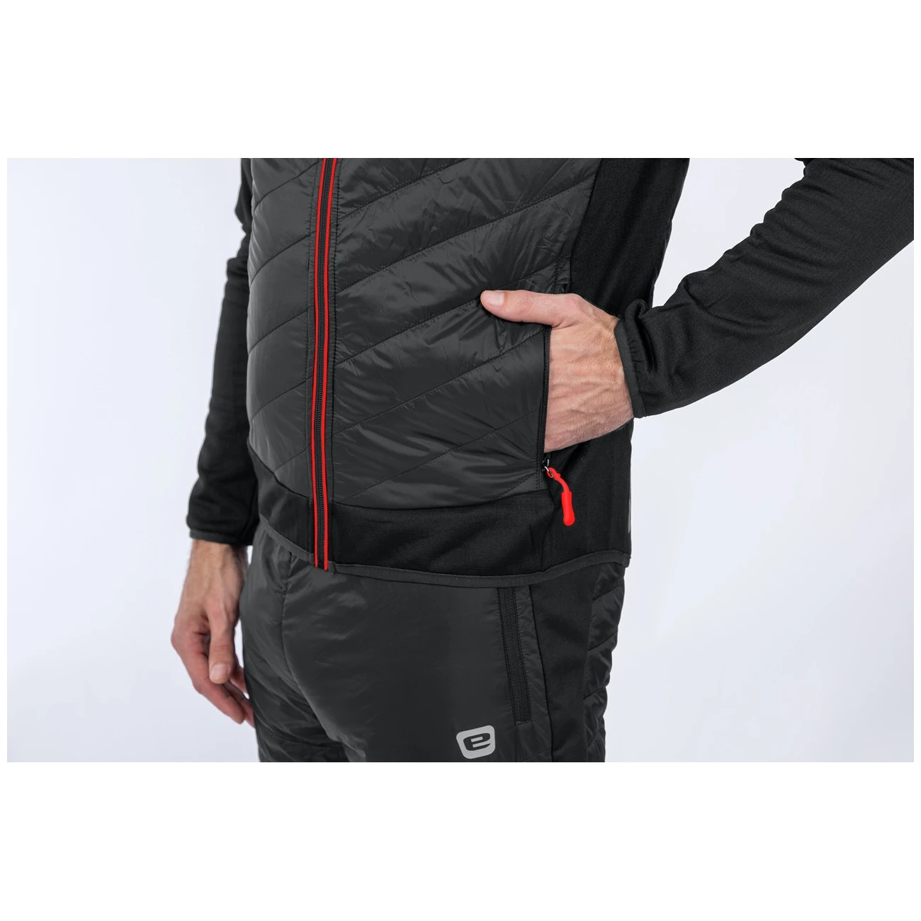 La sudadera híbrida para hombre Crux Pro 2.0 de la marca Etape es apta para todo tipo de clima, ya sea como capa superior o intermedia. En la zona del pecho, la espalda y las mangas, el avanzado material NanoLoft está compuesto por fibras huecas con excepcionales propiedades de aislamiento térmico. Éstos permanecen constantes incluso con un aumento de la humedad causado, por ejemplo, por una mayor actividad física. La parte inferior de las mangas y los paneles laterales son de material SuperDryntex aislante, gracias al cual la sudadera también transpira bien y expulsa el sudor del cuerpo. Cuando haga mucho frío, apreciará la cómoda capucha aislante. La larga cremallera frontal se cierra con un tapón. Hay dos bolsillos con cremallera. Todas las cremalleras están equipadas con tiradores para un mejor manejo. Los elementos reflectantes tampoco faltan.