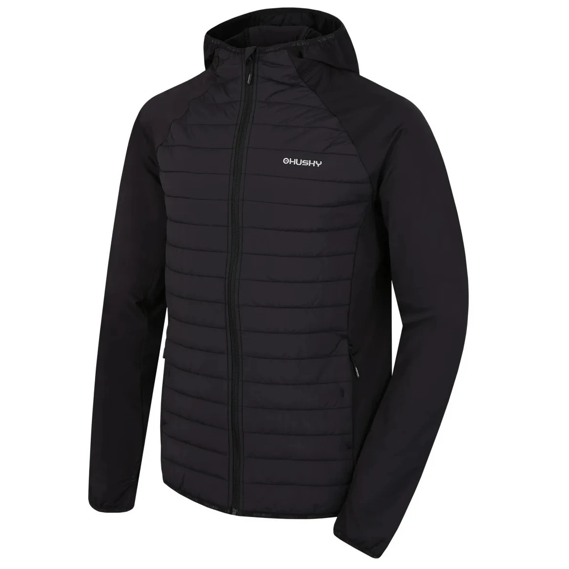 La construcción híbrida combina partes elásticas con paneles ligeramente acolchados para un confort térmico óptimo. La sudadera tiene un corte anatómico, capucha, cremallera cubierta en la barbilla, dobladillos reforzados en las mangas y el dobladillo inferior, y prácticos orificios para los pulgares. Dos bolsillos laterales con cremallera permiten guardar objetos pequeños de forma segura.