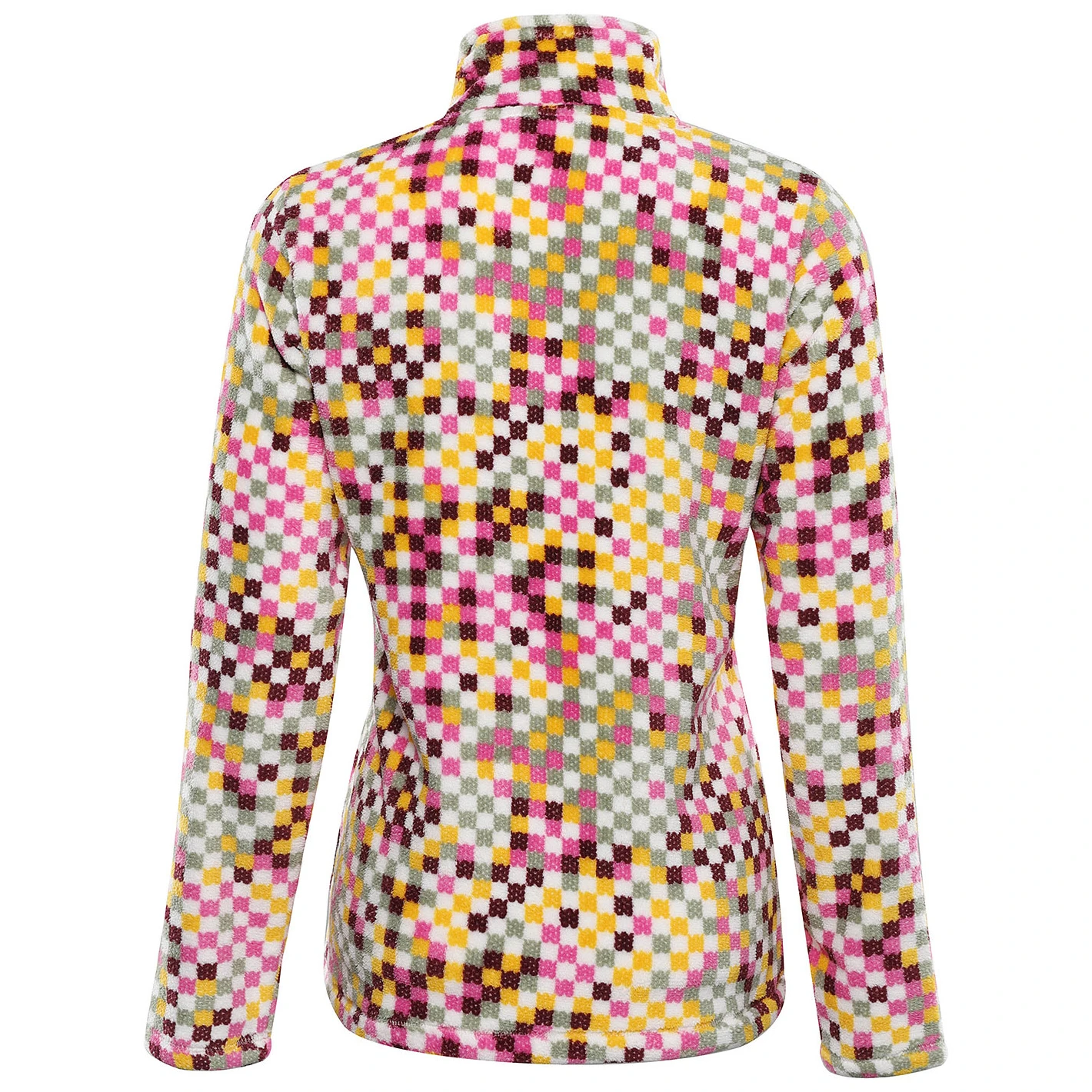 La sudadera tiene un corte Regular Fit semi ajustado que se adapta a la figura femenina y permite la libertad de movimiento en diversas actividades. La cremallera larga de contraste y el cuello alto ofrecen variabilidad de ventilación y protección contra el frío. El diseño totalmente estampado, el elegante parche en la parte delantera y el moderno diseño de color añaden un aspecto atractivo a la sudadera, lo que la hace adecuada no solo para el senderismo o las estancias en la naturaleza, sino también para los conjuntos urbanos.