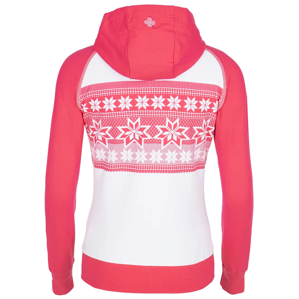 Sudadera de mujer Kilpi Apoline con un moderno estampado invernal es adecuada tanto para el deporte como para el tiempo libre. Tiene capucha y 2 bolsillos. Es totalmente desmontable.