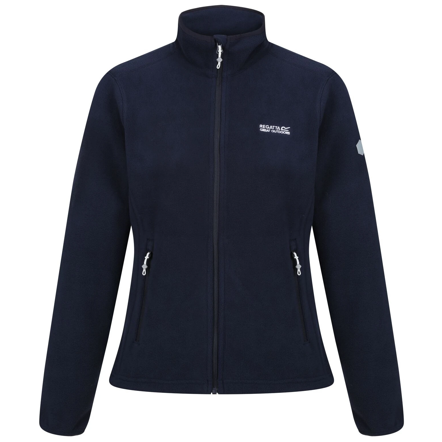 Lasudadera elegante para mujer Floreo IV de Regatta ofrece comodidad duradera durante las aventuras al aire libre. La sudadera con capucha está confeccionada con un tejido polar en el que una cara está cepillada para ofrecer un tacto supersuave, mientras que la otra es resistente y evita la formación de bolitas. La sudadera con capucha cuenta con una cremallera completa que facilita su colocación, un dobladillo con cordón elástico, un ribete elástico en los puños y el cuello para protegerte del viento y 2 prácticos bolsillos con cremallera.