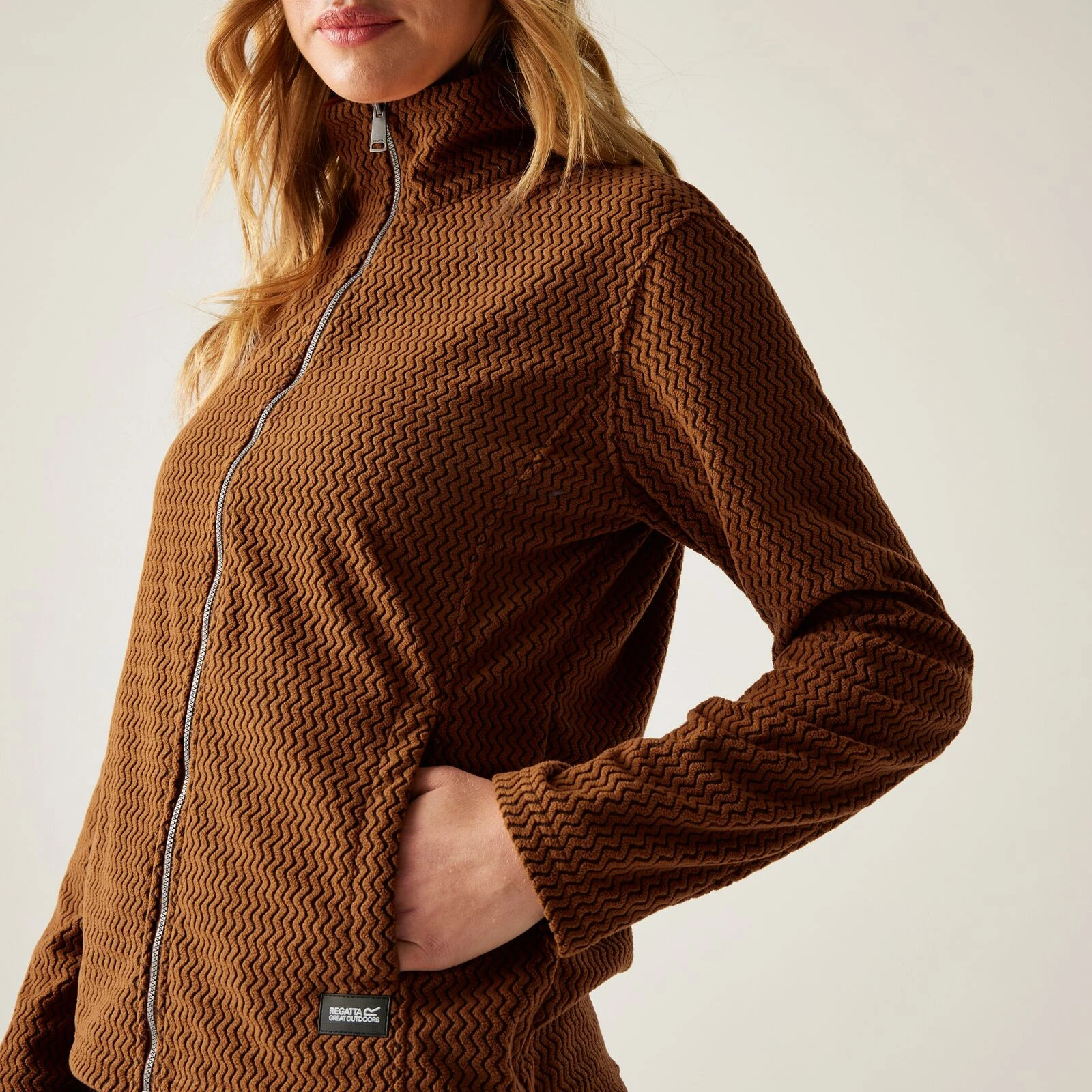 La sudadera para mujer Heidy Full Zip de Regatta está confeccionada con forro polar ondulado a rayas, tiene cierre de cremallera completa, dos bolsillos ribeteados y un corte favorecedor. Ideal para excursiones al parque o reuniones informales.