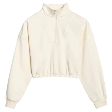La sudadera infantil Sweatshirt F1939 4F con interior cepillado, corte cropped y cuello alto con cremallera combina calidez, comodidad y un diseño moderno para el uso diario.
