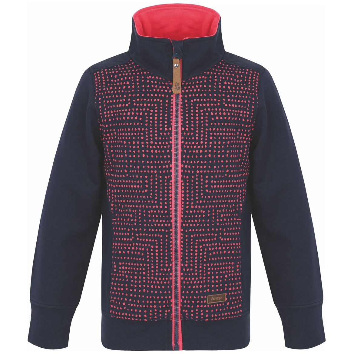 La sudadera de niña de algodón con cremallera Loap Difena tiene un corte clásico con cuello alzado y dos bolsillos laterales. La cremallera de hueso tiene una práctica protección en el extremo superior que protege la barbilla del frío y de posibles lesiones. En la parte delantera, esta sudadera de niña está decorada con un estampado mate de calidad que es agradable al tacto. Su hija estará guapa con ella durante todo el año en la escuela, en casa y en su tiempo libre. Combina con vaqueros, leggings y pantalones de chándal.