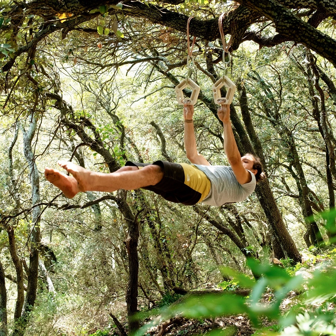 Creado para el calentamiento y el entrenamiento de ejercicios de suspensión y contracción para reforzar las estructuras pasivas y activas de los dedos, los brazos y la espalda. También pueden utilizarse como soportes inestables para realizar flexiones. Su superficie blanda también garantiza un agarre que convence a los escaladores.