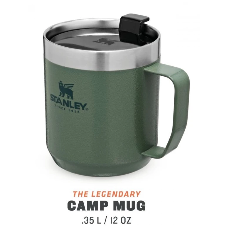 Taza térmica Camp mug con un volumen de 350 ml del fabricante Stanley. La taza está fabricada en acero inoxidable de alta calidad. Esto garantiza que la bebida estará caliente en la taza hasta 1,5 horas y fría hasta 3 horas. El cuello ancho garantiza un buen manejo tanto para verter como para lavar. Está asegurada contra derrames durante el desplazamiento. Sin embargo, no es adecuado para una mochila, donde quedaría tumbado.