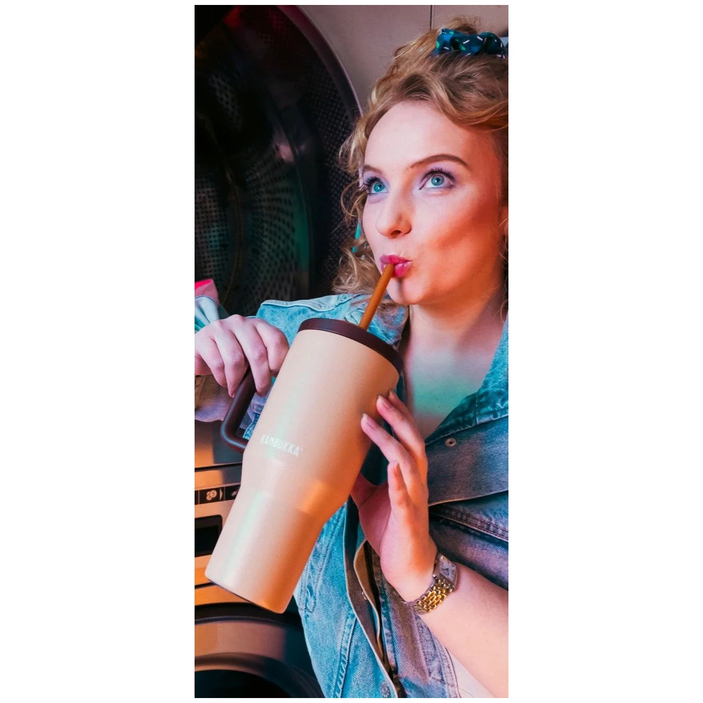 Disfruta de la máxima flexibilidad: bebe directamente del orificio o utiliza la práctica pajita. La pajita está inteligentemente integrada. Simplemente deslícela hacia abajo y estará listo para empezar.