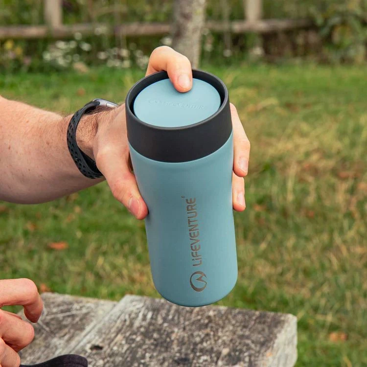 El termo Lifeventure One Touch de 350 ml está diseñado para un uso sencillo y eficaz. Disfruta de tu bebida en cualquier lugar y momento gracias al intuitivo sistema Push-to-open 360°: para abrir o cerrar la tapa, solo tienes que presionar la parte superior y podrás beber cómodamente por todo el borde del cierre.
