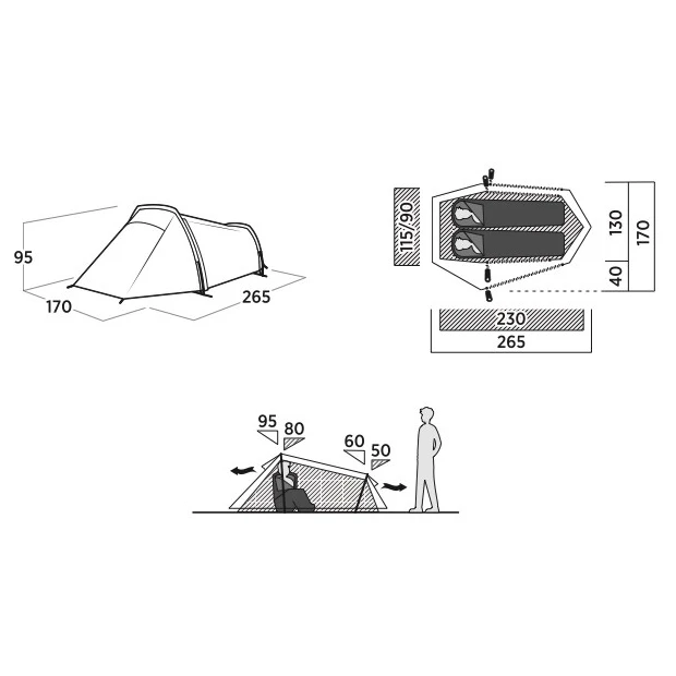 Está fabricada con WeatherGuard, un tejido de poliéster muy duradero con una columna de agua de 3000 mm que le protege de forma fiable de las inclemencias del tiempo. El suelo impermeable del dormitorio tiene un revestimiento de poliuretano y una columna de agua de 5000 mm. Los materiales cumplen las normas vigentes y son ignífugos.