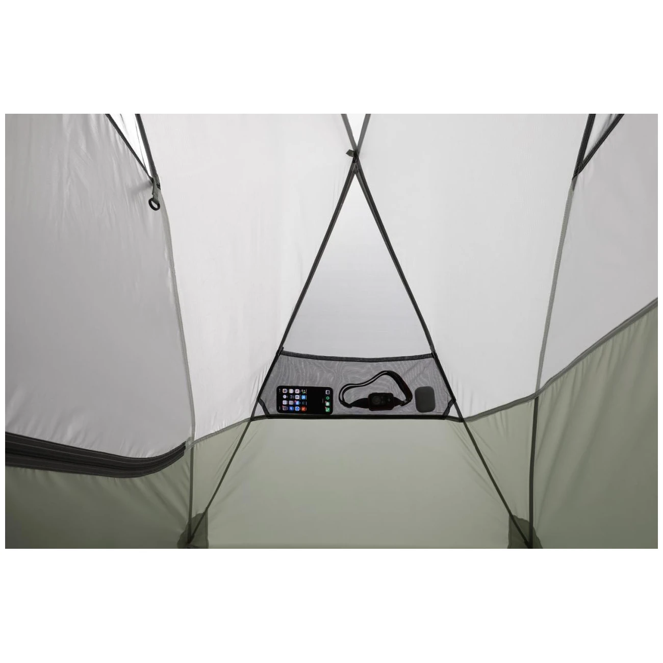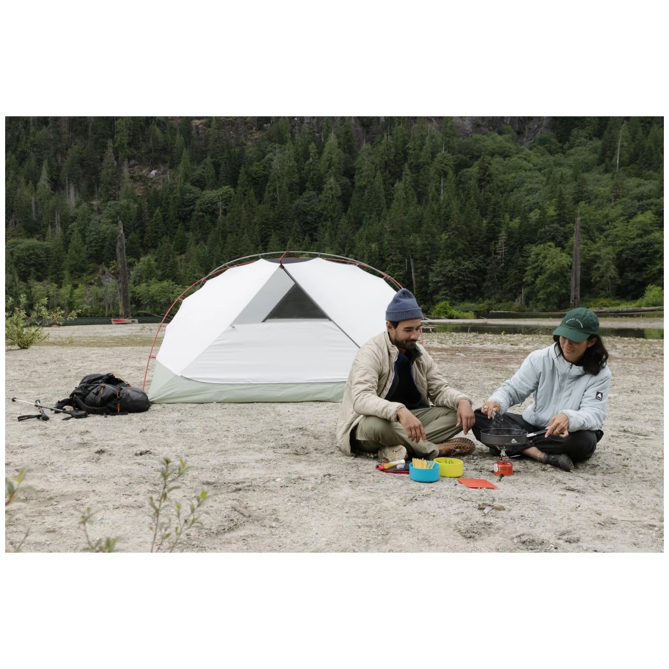 El sobretecho de resistente poliéster ripstop 75D con una columna de agua de 1500 mm y el suelo con una columna de agua de 3000 mm garantizan una protección fiable contra la lluvia y la humedad. Las varillas de aluminio de la serie 7000 proporcionan estabilidad incluso en condiciones adversas, y el código de colores de las varillas y las correas permite un montaje rápido e intuitivo de la tienda. La comodidad se complementa con dos grandes entradas StayDry™, amplios vestíbulos para el equipo y prácticos bolsillos en el techo con ojales para cables.