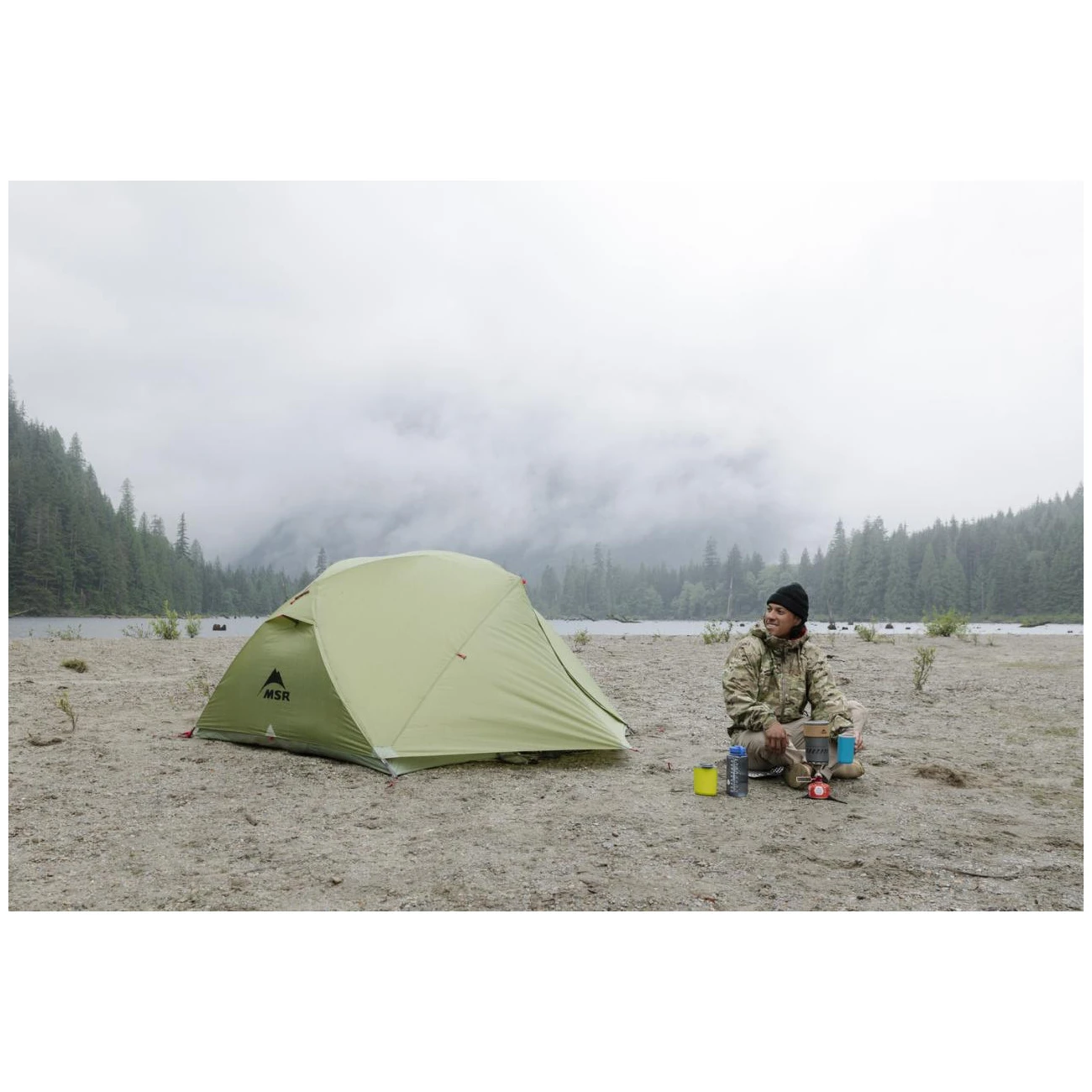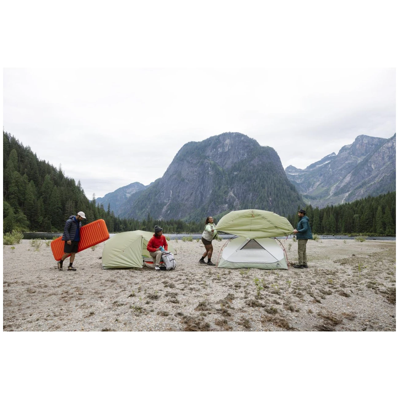 MSR Elixir 2 es una tienda de campaña duradera y cómoda diseñada para dos viajeros que buscan un refugio fiable para trekkings, cicloturismo y acampadas de varios días. Gracias a su diseño bien pensado, ofrece más espacio que las tiendas de campaña habituales de su categoría y acomoda cómodamente incluso los colchones inflables anchos modernos.