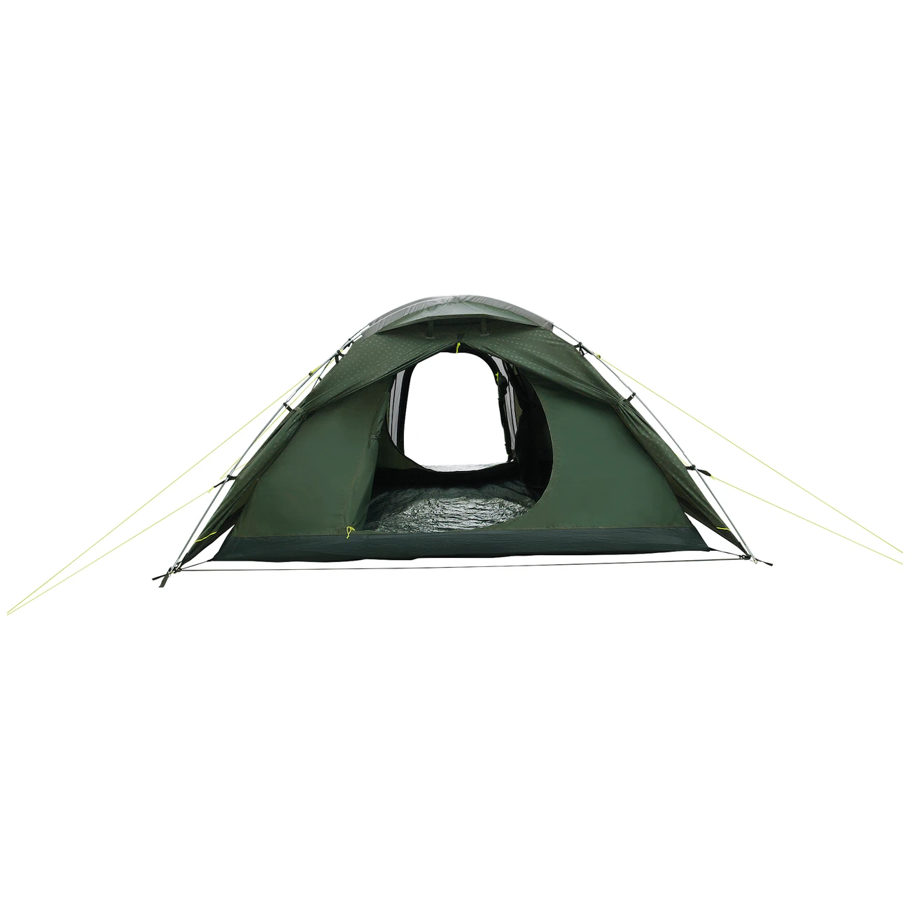 La tienda tiene una gran entrada principal que se pliega hacia un lado cuando se abre la cremallera y el suelo queda a ras de suelo, lo que facilita mucho la entrada. Delante del dormitorio hay un pasillo con techo ligero, para que entre suficiente luz. El dormitorio, por su parte, tiene una huella y paredes oscurecidas para dormir sin interrupciones. Hay un gran orificio de ventilación en la parte trasera de la tienda que ayuda a una mejor circulación del aire y puede servir como segunda entrada. Las entradas de las habitaciones y las ventanas están equipadas con mosquiteras para evitar la entrada de insectos molestos, las ventanas también tienen cortinas.