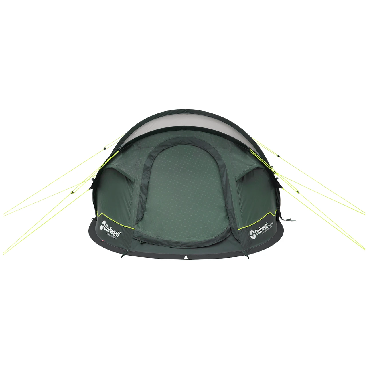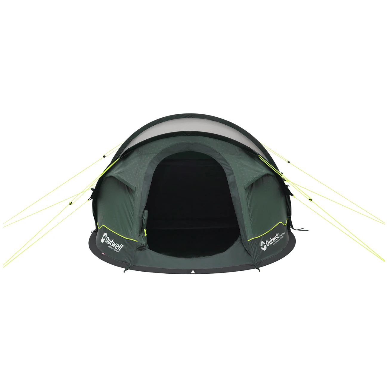 La estructura de la tienda está hecha de fibra de vidrio resistente pero flexible, que es ligera. La construcción de la tienda es muy sencilla gracias a su mecanismo de auto-despliegue. Después de desembalarla, clava las estacas y fija los cordones de sujeción, que tienen puntos de fijación dobles a lo largo de toda la tela y refuerzos especiales en los puntos de conexión a la tienda. Outwell El sistema Wind Guard 2.0 mejora la estabilidad en vientos fuertes.