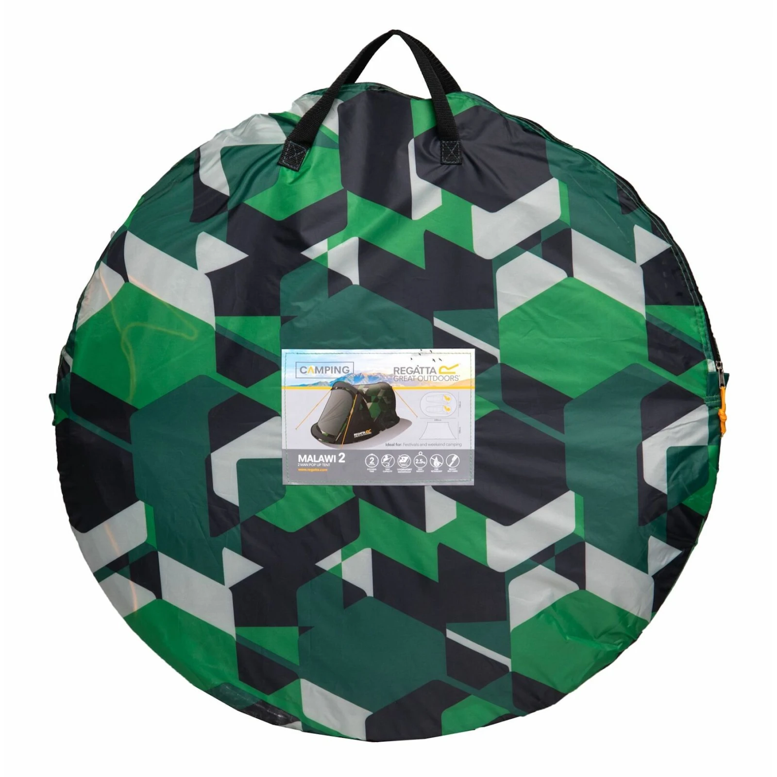 La tienda de campaña Malawi 2 de la marca Regatta te resultará muy útil, especialmente en verano, en festivales y viajes de fin de semana. La tienda está diseñada para 2 personas que pueden dormir cómodamente. Es muy fácil de montar, se arma simplemente lanzándola al aire, la tienda se despliega sola en sólo 2 segundos.