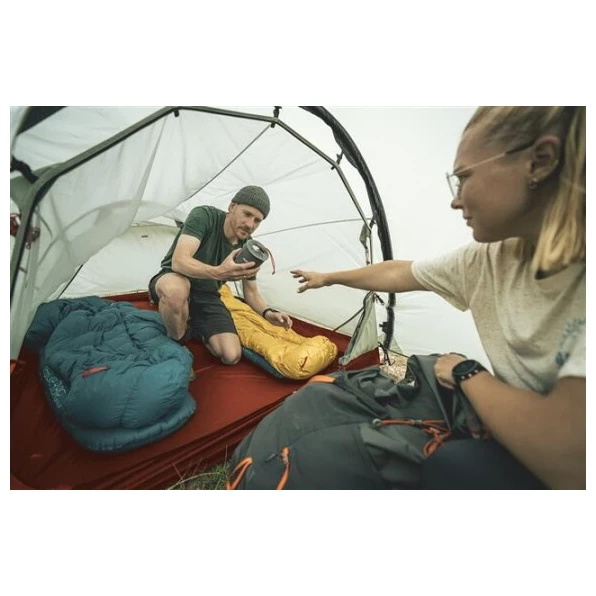 Para una protección perfecta en cualquier clima, cuenta con un doble techo siliconado HydroTex SiliPoly RS que no se deforma. Este material tiene una columna de agua de 2000 mm y gracias a ripstop es resistente a daños mecánicos. El interior está hecho de nailon transpirable, el suelo es de nailon ripstop, recubierto de poliuretano y con una columna de agua de 5000 mm. Las costuras selladasson algo natural. Los materiales no contienen PFAS.