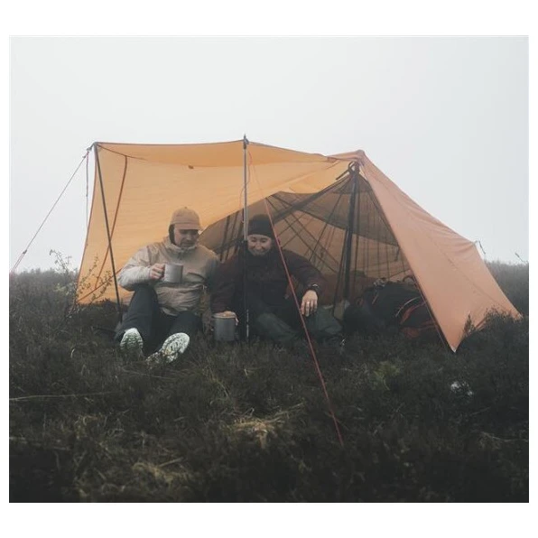 Para una protección perfecta en cualquier clima, se encargará el doble techo siliconizado HydroTex SiliPoly RS UL, que no se deforma. Este material tiene una columna de agua de 2000 mm y gracias a ripstop es resistente a daños mecánicos. El interior está hecho de nailon transpirable, el suelo es de nailon ripstop, recubierto de poliuretano y con una columna de agua de 5000 mm. Las costuras selladasson algo natural. Los materiales no contienen PFAS.