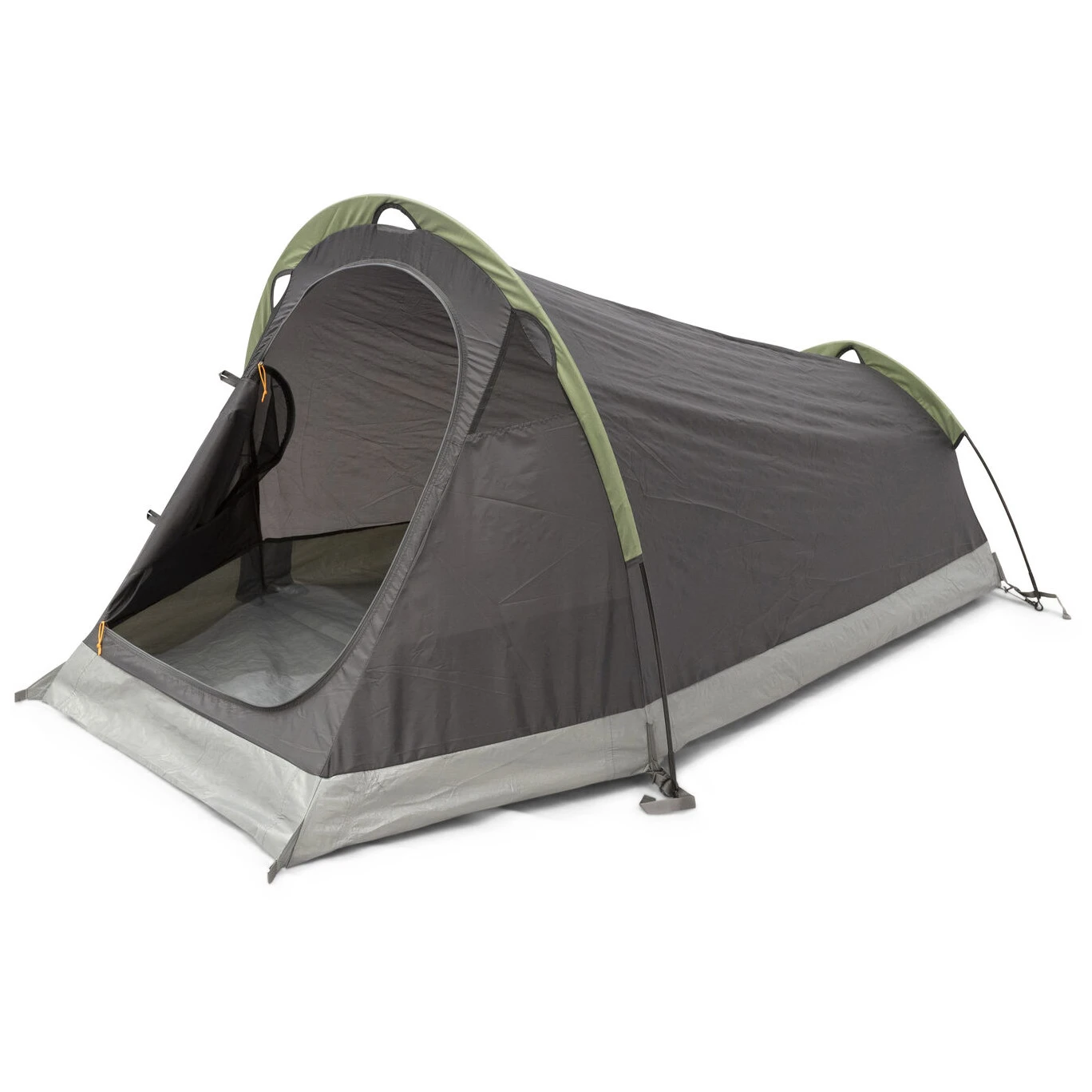 Las varillas de la tienda están fabricadas con fibra de vidrio PowerFlex®, que es ligera, resistente y fiable. La ventilación cuidadosamente diseñada garantiza una gran ventilación de la tienda, lo que resulta ideal para viajes largos y excursiones por la montaña. La tienda también cuenta con lazos para colgar luces, bolsillos de almacenamiento y elementos reflectantes para una mejor visibilidad. La tienda también incluye una práctica funda para guardarla fácilmente. La tienda ha sido probada según la norma europea EN5912.