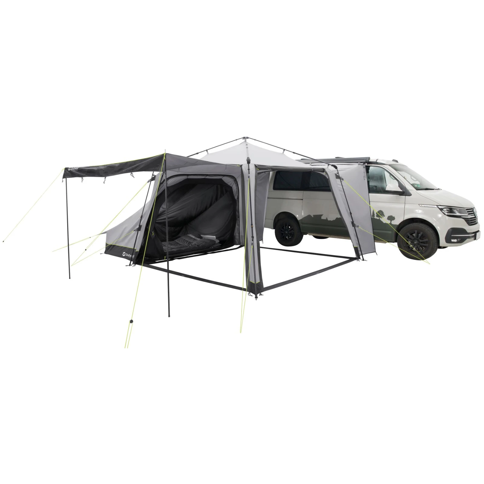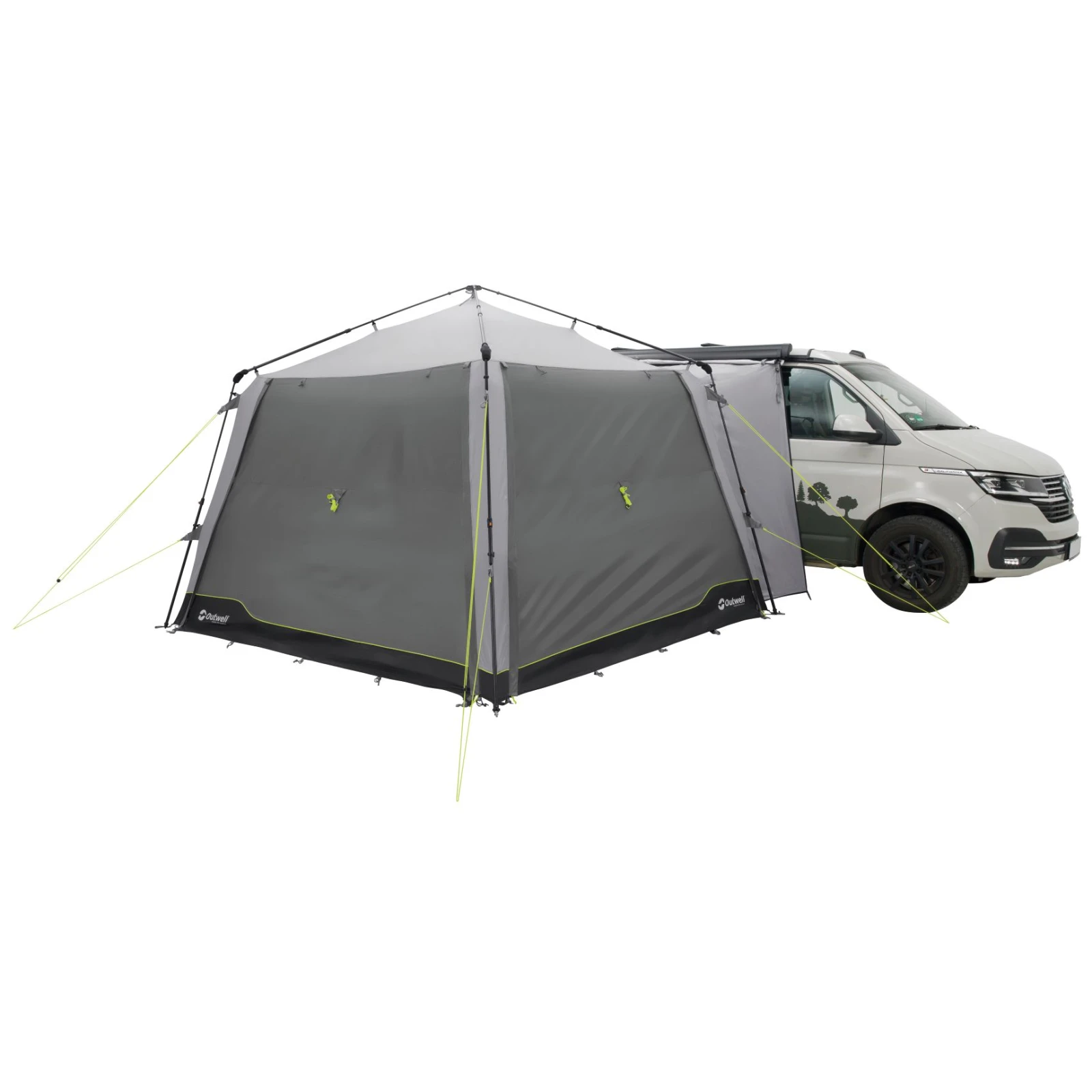 Gracias a su versatilidad, la tienda de campaña Fastlane 300 Shelter del fabricante danés Outwell es la elección perfecta para cualquier ocasión. En tus viajes, puedes utilizarla como tienda independiente clásica, como tienda para la furgoneta (tienes que comprar un conector), como refugio para sentarte con los amigos o para resguardarte del sol. También puede servir para guardar bicicletas y otros objetos que quieras mantener ocultos de la vista de los demás o de las inclemencias del tiempo.
