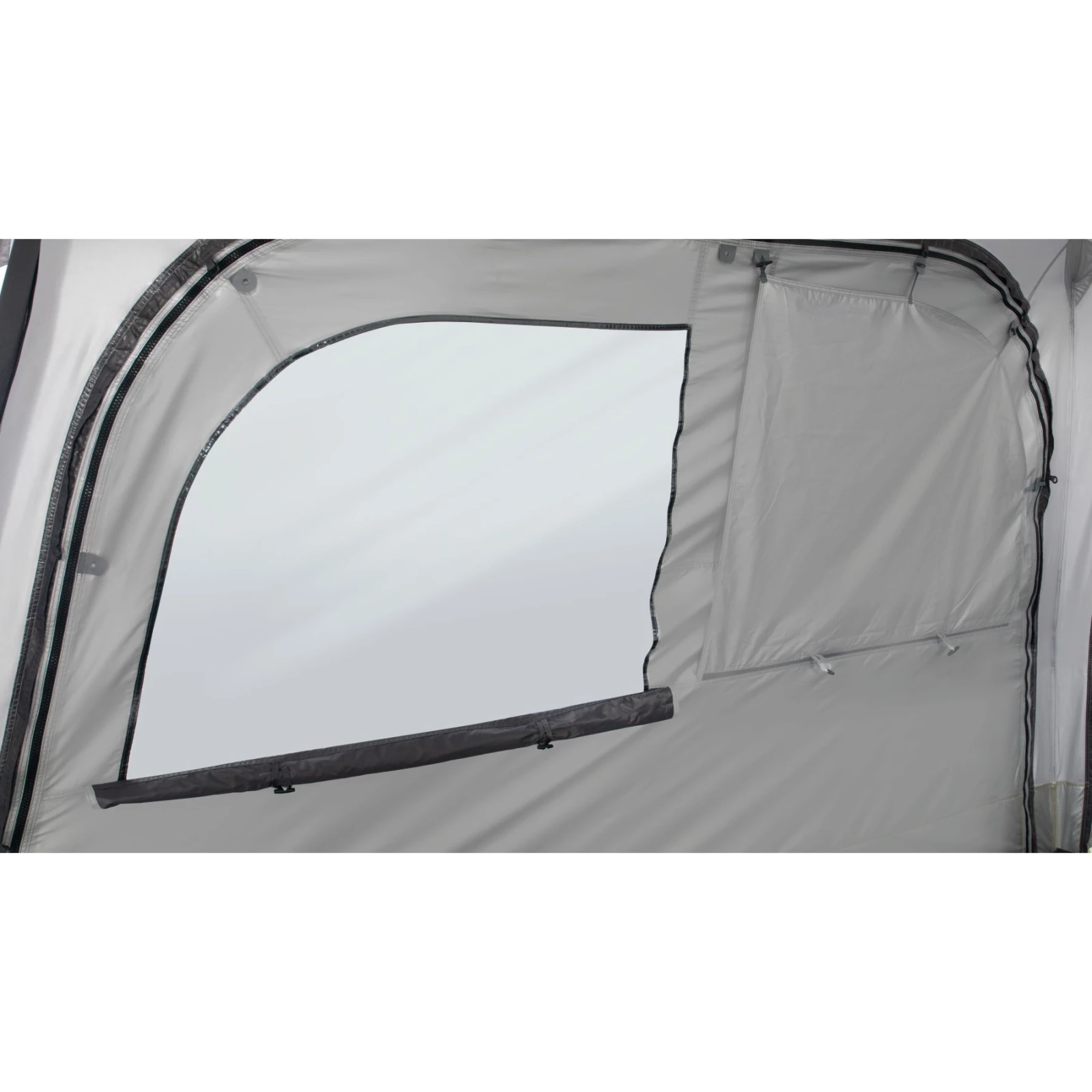 Otras características de la tienda incluyen paredes desmontables con cristales tintados integrados. Las ventanas también están equipadas con cortinas para mayor intimidad. Las otras 2 paredes laterales se pueden convertir rápida y fácilmente en un espacioso toldo, ofreciéndole un espacio cubierto adicional (barras de pie no incluidas).