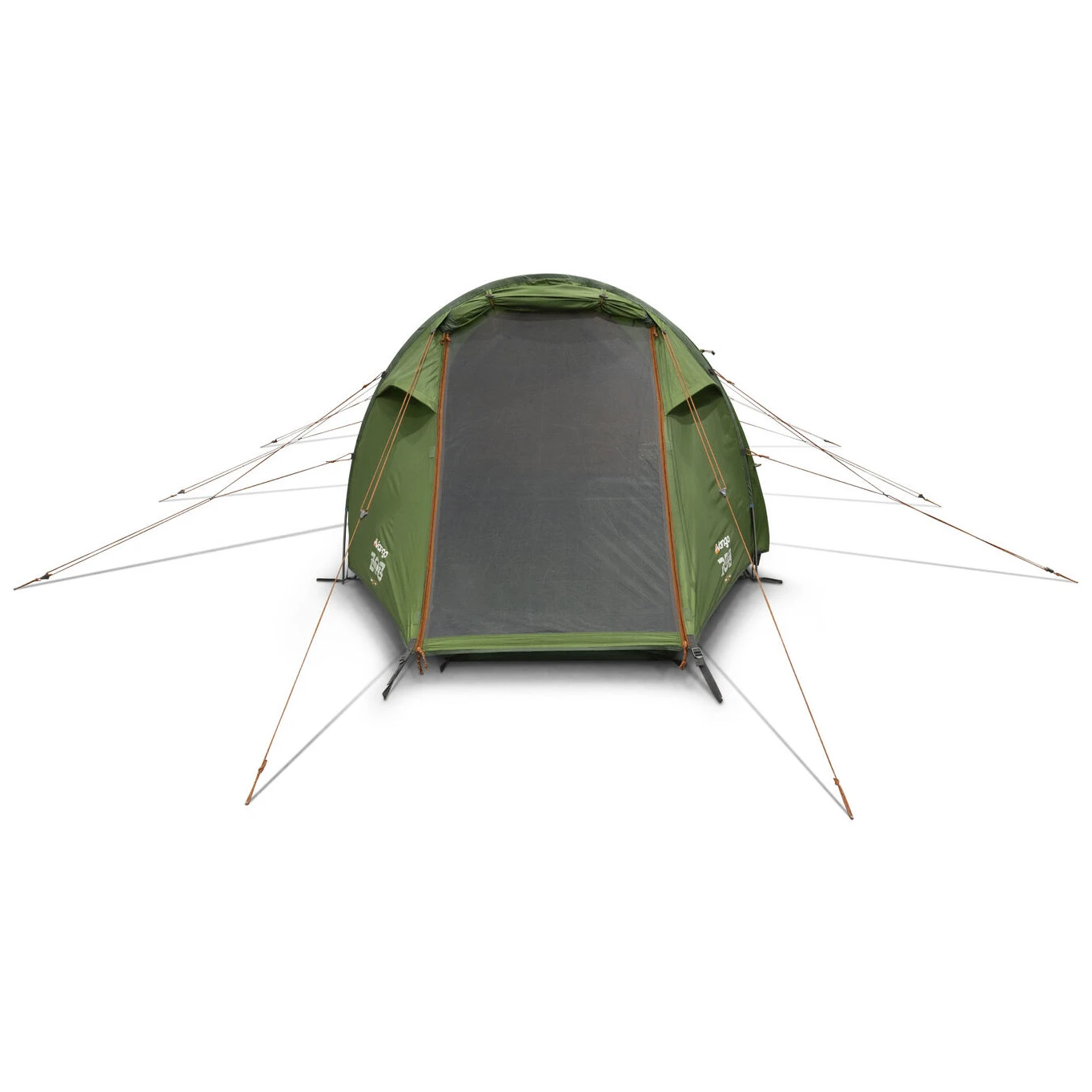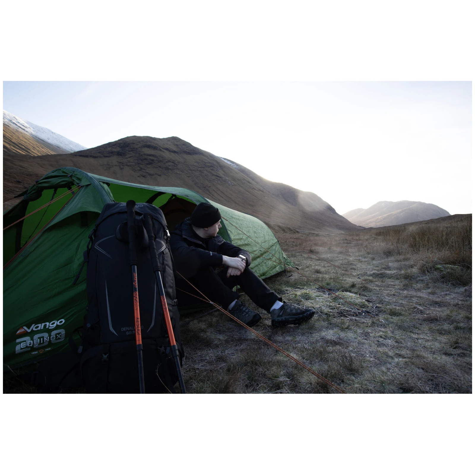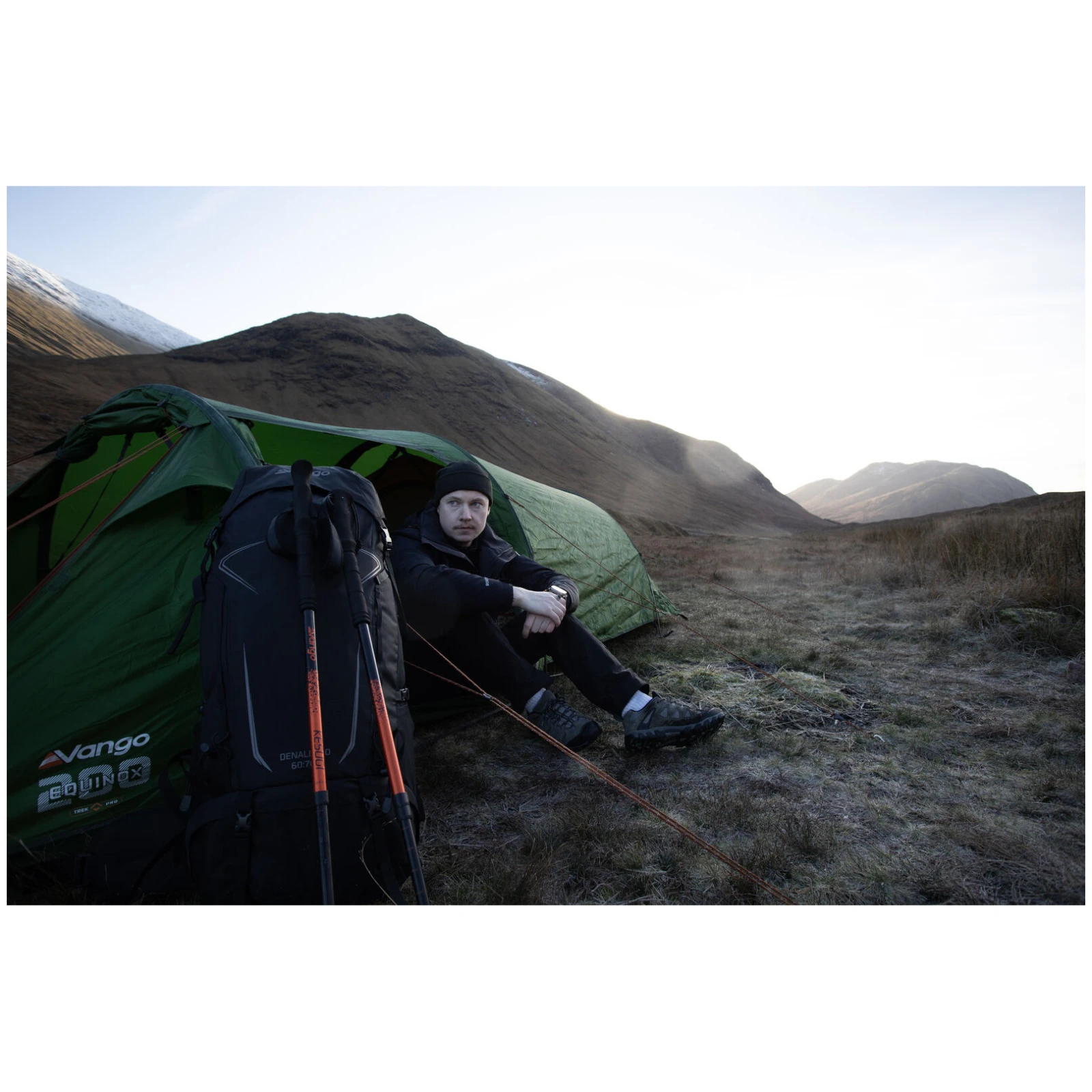 Vango Equinox 200 es una tienda de campaña tipo túnel resistente, diseñada para campistas y aventureros que buscan un refugio fiable en condiciones climáticas cambiantes. El diseño de bajo perfil con mangas de varilla planas reduce significativamente la resistencia al viento y aumenta la estabilidad general de la tienda, incluso con ráfagas fuertes.