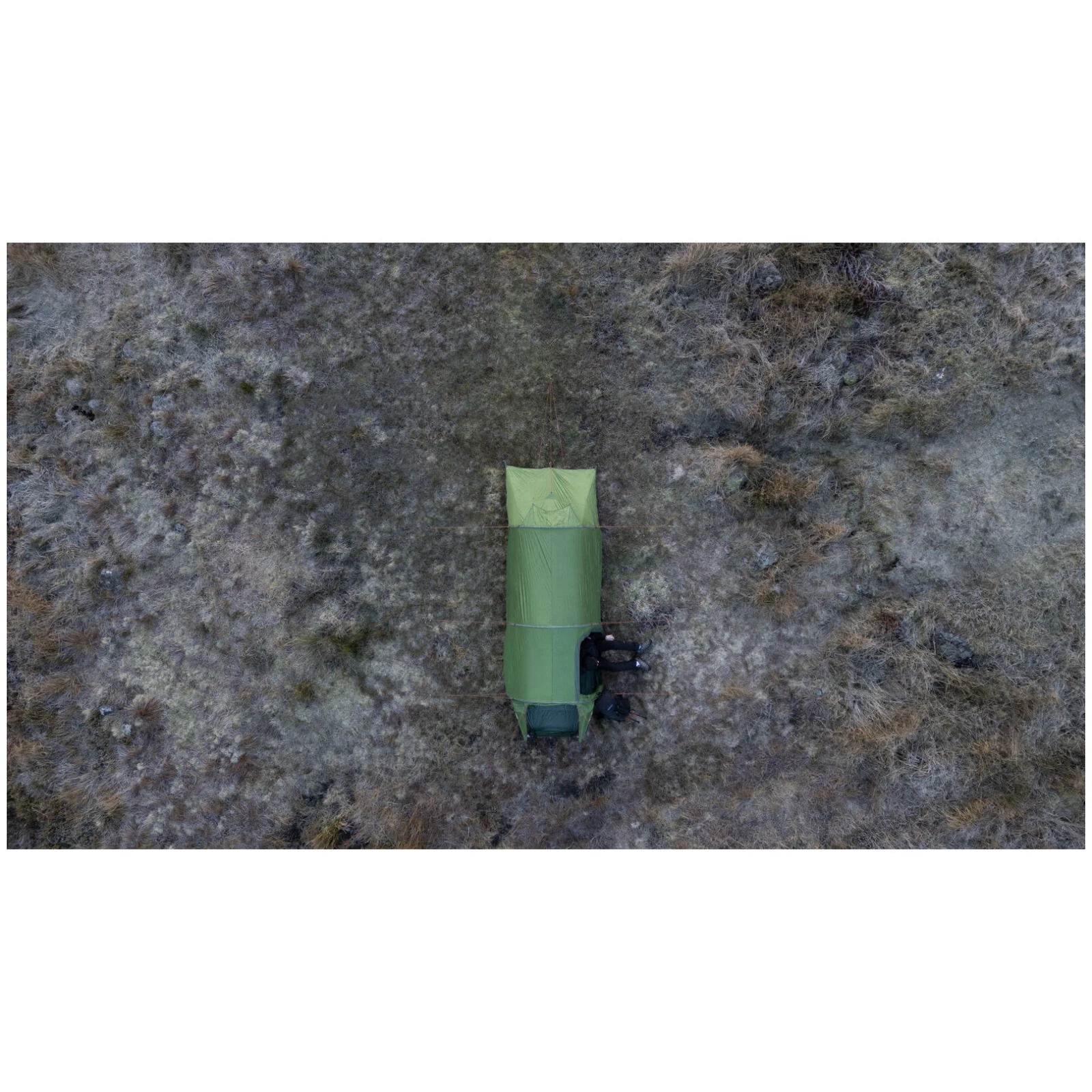 El refugio cuenta con un dormitorio trasero cómodo y un vestíbulo extra espacioso que ofrece suficiente espacio para guardar equipo, ropa mojada o cocinar. Las puertas de malla y las aberturas de ventilación en ambos extremos de la tienda garantizan una buena circulación de aire y ayudan a reducir la condensación. Los detalles prácticos, como los cordones reflectantes, los bolsillos interiores o la espaciosa bolsa de transporte Fast Pack, aumentan la comodidad de uso y transporte.