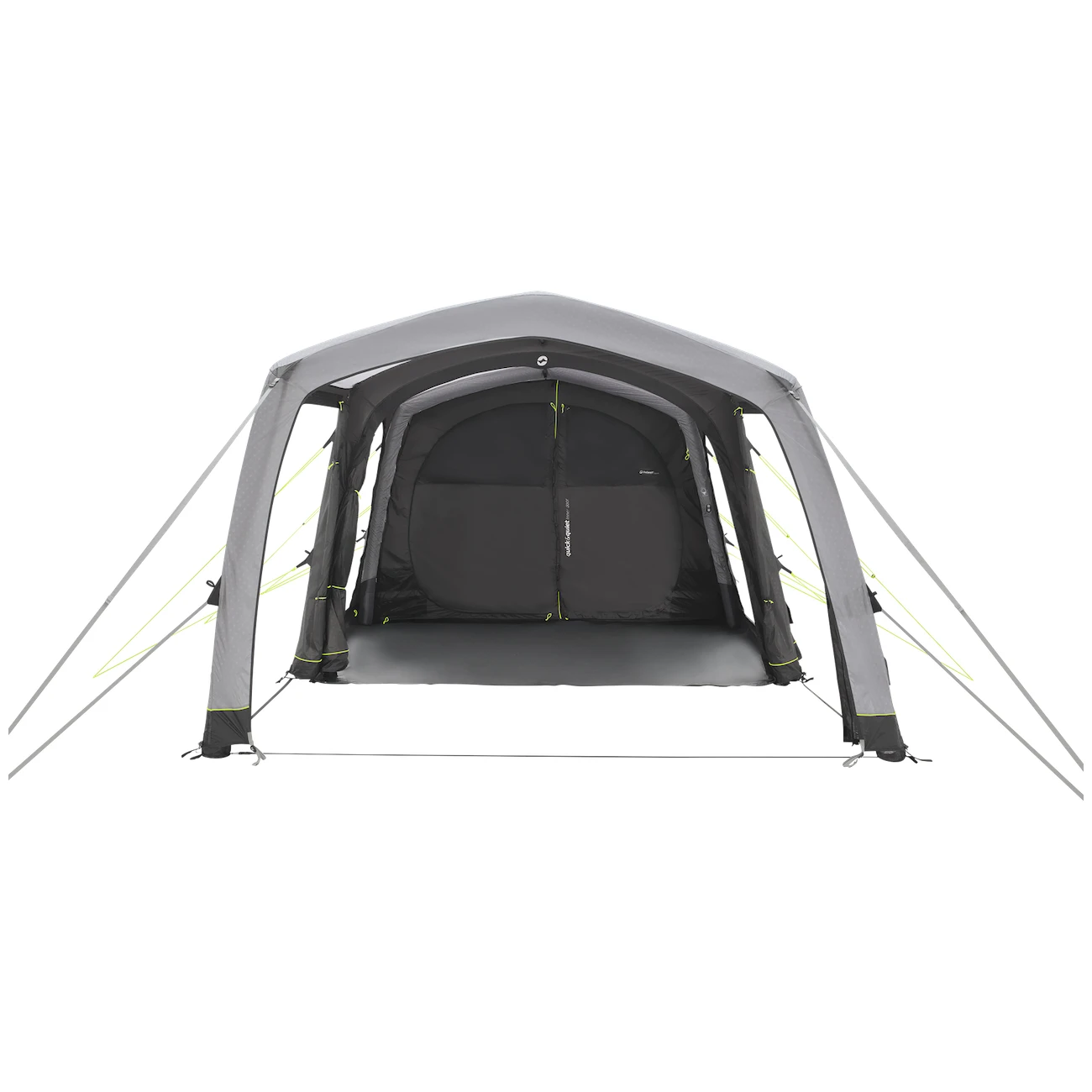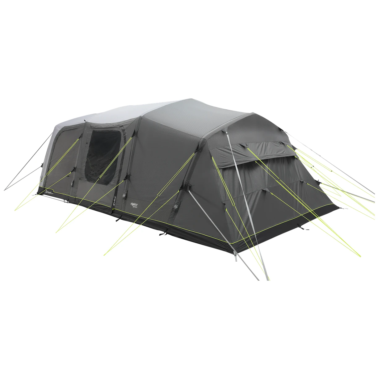 La estructura hinchable Rigid Air System se compone de cámaras de aire independientes preformadas. Garantizan la estabilidad de la tienda junto con las estacas de anclaje y las cuerdas. Además, hay varillas de aluminiode soporte en lugares clave. Las cuerdas siempre están bien recogidas en la lona exterior, lo que resulta muy práctico porque no se enredan durante el embalaje. Hay correas resistentes y de ajuste rápido para el viento. Forma aerodinámica Aerodinámica Storm Protection 9 proporciona protección contra vientos de hasta 88 km/h.