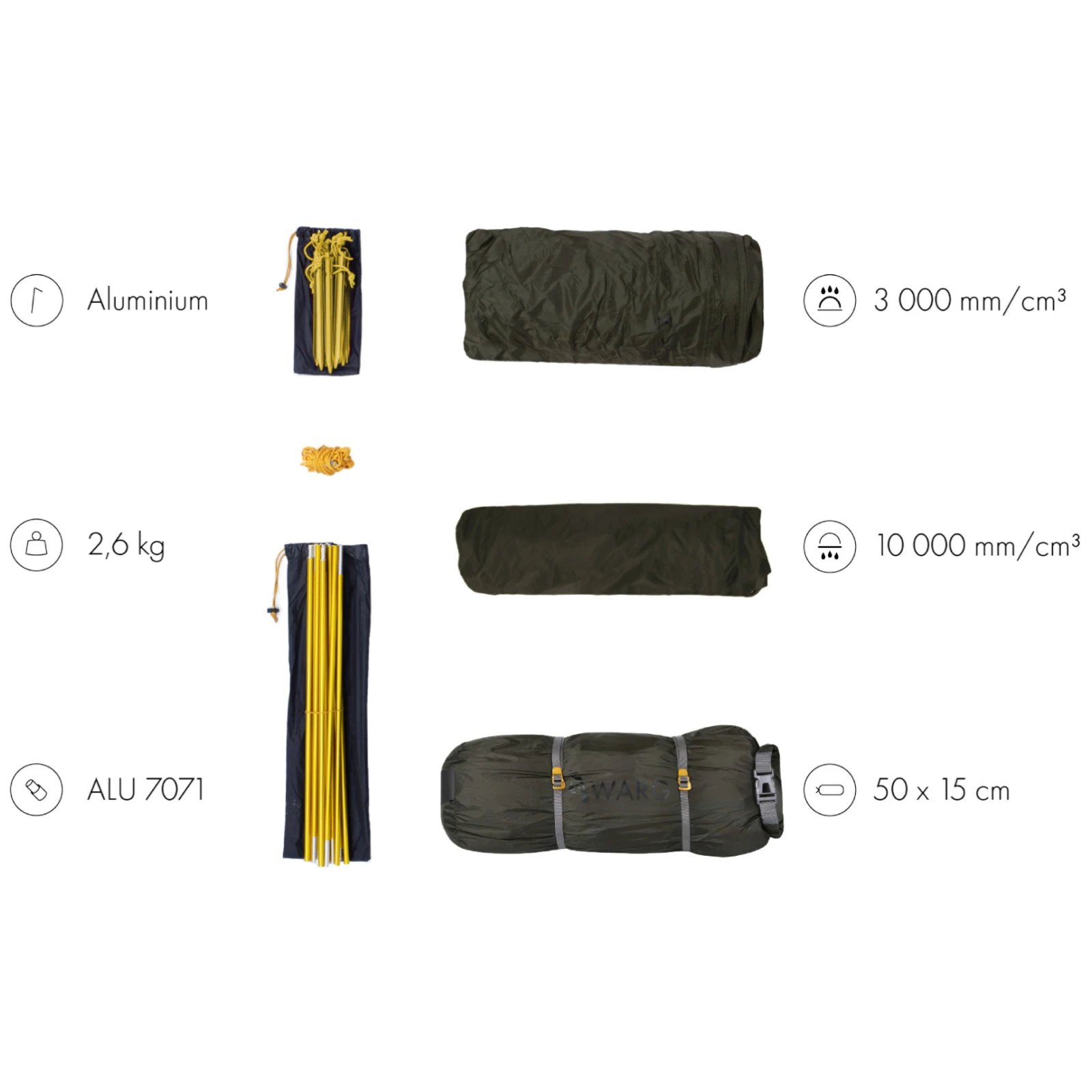 La tienda de campaña autosuficiente ultraligera Warg Aura 2 Ultra tiene una estructura externa de duraluminio, gracias a la cual se puede montar excepcionalmente rápido, incluso por una sola persona. La clásica forma de cúpula se complementa con una única barra frontal para crear una marquesina con mayor espacio de almacenamiento.