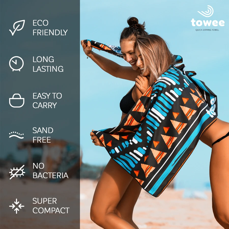 La toalla Eternity de Towee en tamaño 70 x 140 cm está fabricada con un material de secado rápido y es increíblemente compacta, lo que la convierte en un equipo indispensable para sus actividades diarias, como son deportes o viajes. Pero también es perfecto para relajarse en la playa, ya que no se le pega ni un grano de arena y se queda donde debe. La funcionalidad de la toalla queda perfectamente subrayada por sus propiedades antibacterianas.