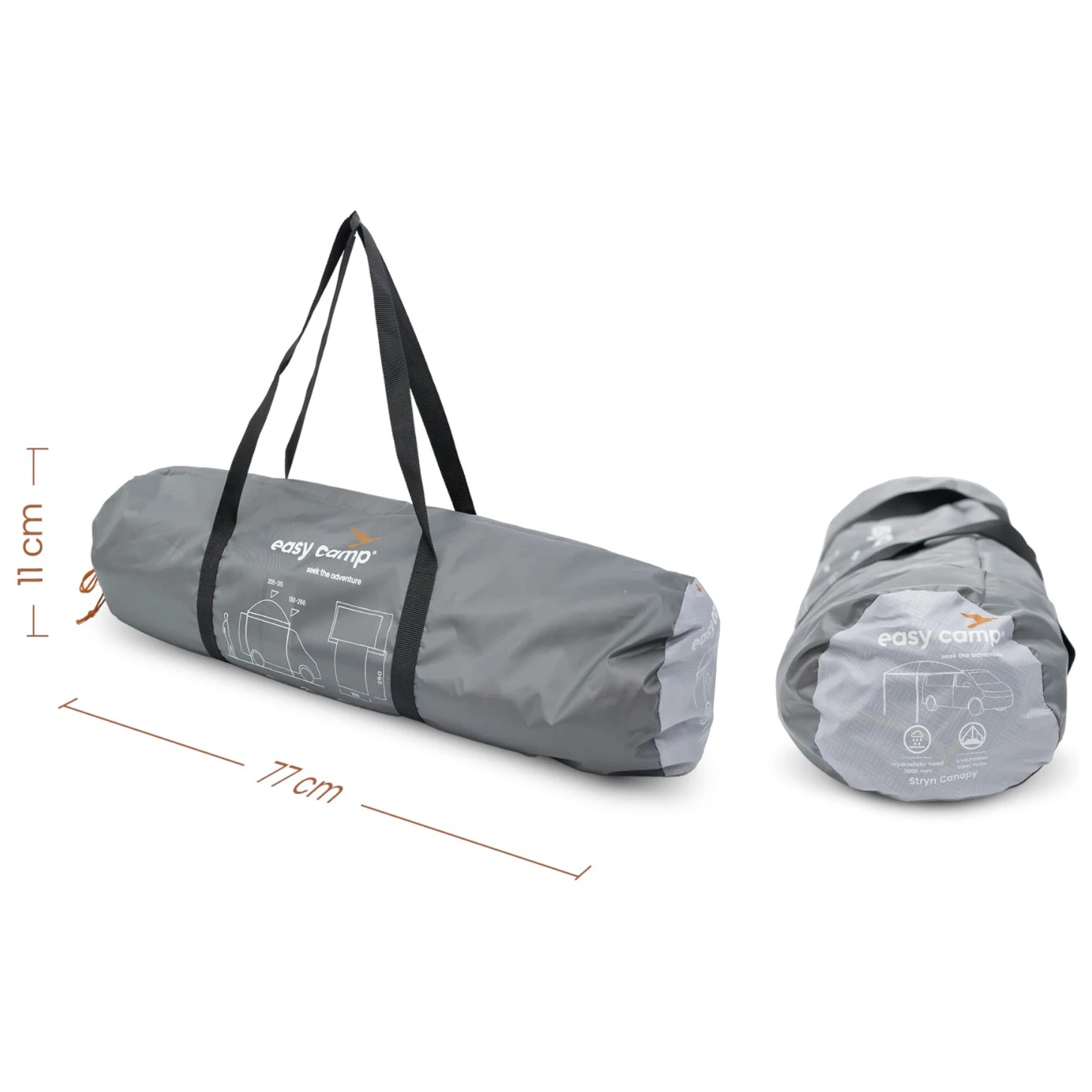 El toldo Stryn Canopy de la marca Easy Camp es una solución universal para ampliar rápidamente el espacio en autocaravanas, furgonetas y caravanas. En poco tiempo, creará un agradable espacio para el descanso, la cocina o para sentarse a la sombra, al tiempo que proporcionará protección contra la lluvia ligera. Es ideal para acampar, para acampar en la naturaleza o para la playa.