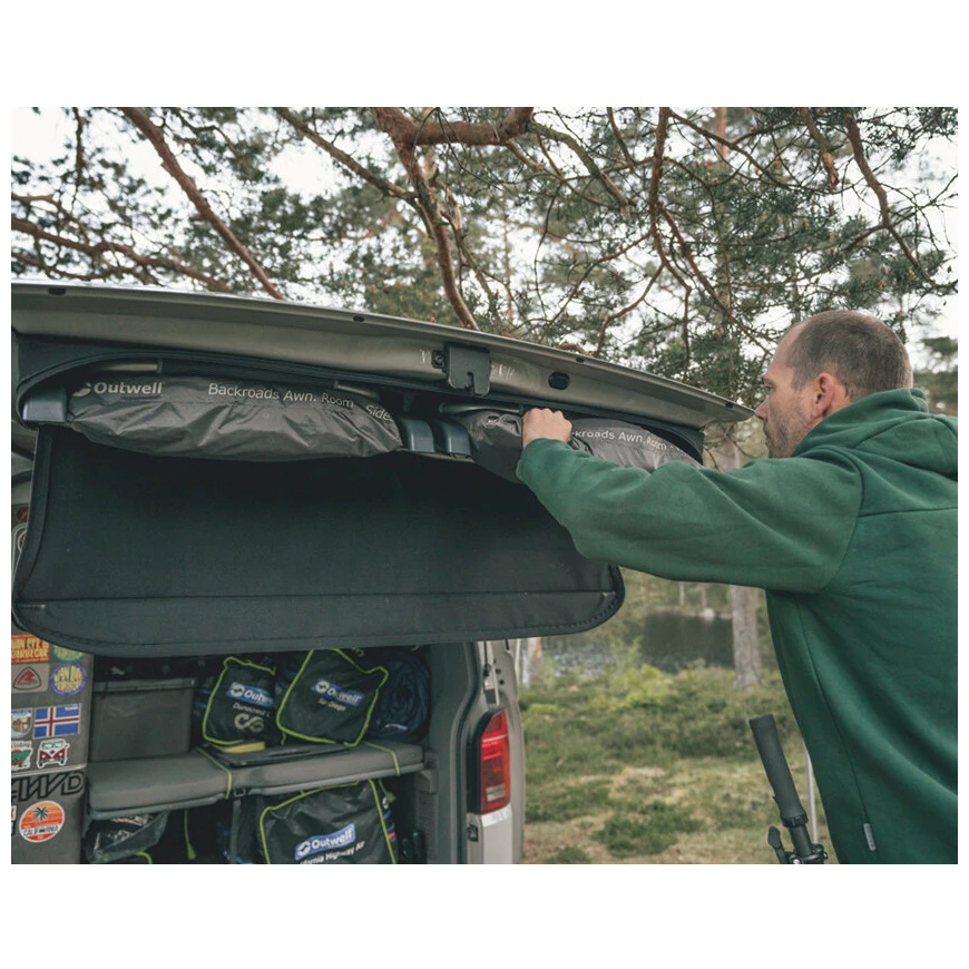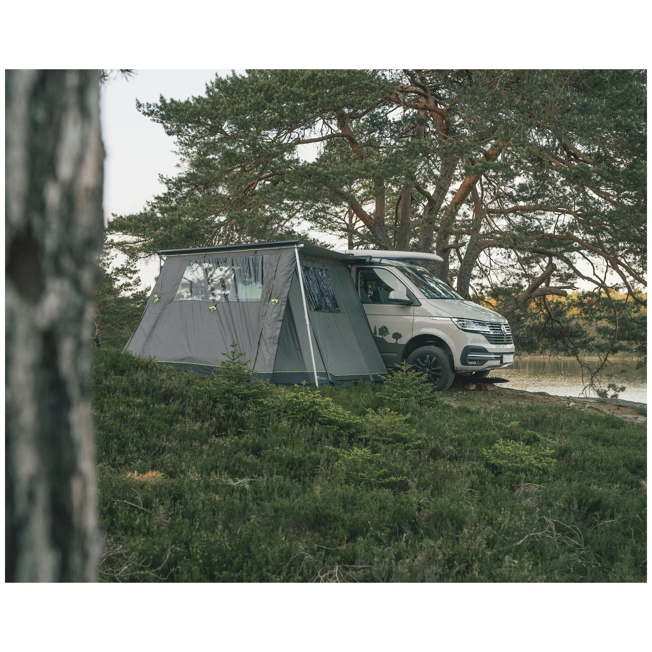 El anexo Habitación para toldo para caminos secundarios de la marca danesa Outwell es la opción ideal para acampar cuando viajas en autocaravana con toldo. El refugio te protegerá del sol, la lluvia y el viento.