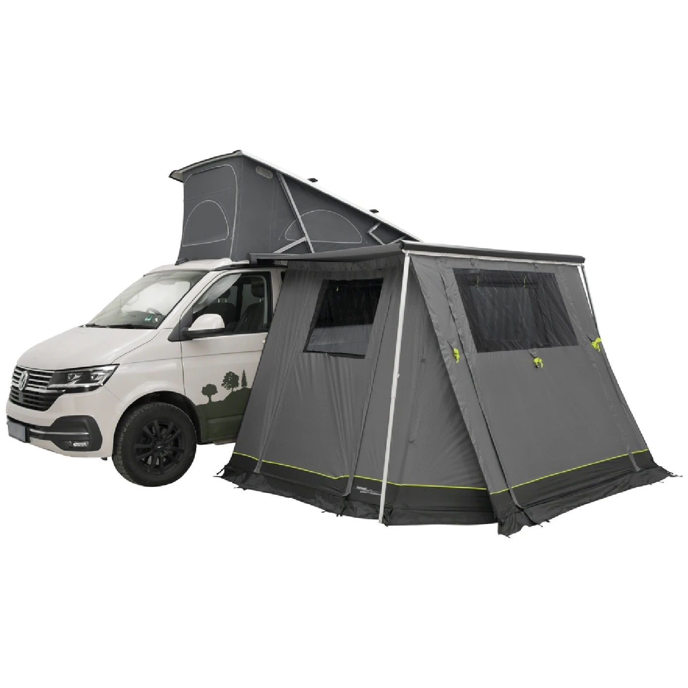 El anexo Habitación para toldo para caminos secundarios de la marca danesa Outwell es la opción ideal para acampar cuando viajas en autocaravana con toldo. El refugio te protegerá del sol, la lluvia y el viento.