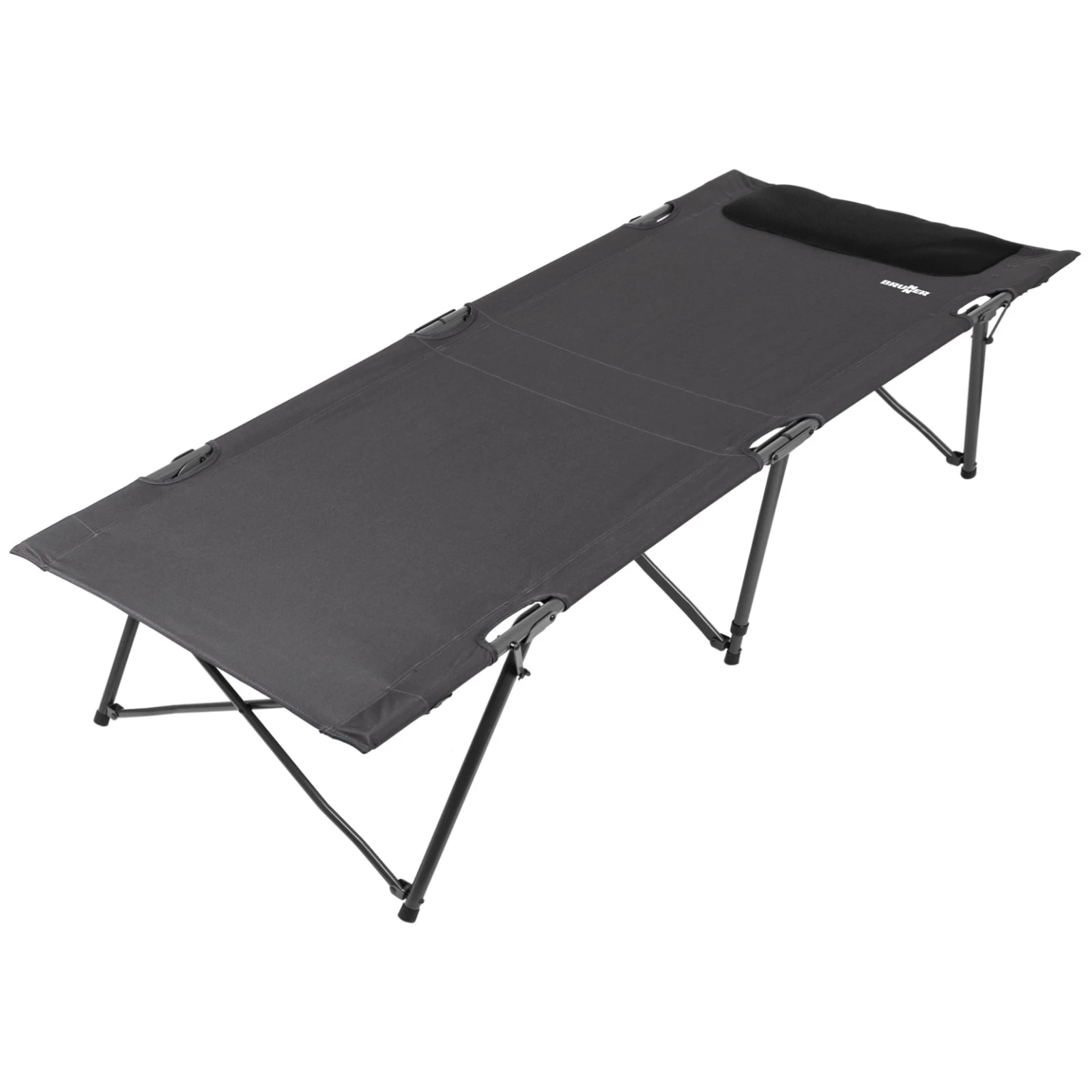 Lacama plegable automática para exteriores Brunner es la opción ideal para quienes buscan una tumbona estable y cómoda para acampar o pasar la noche en caso de emergencia. Gracias al mecanismo de plegado especialmente diseñado, puede desmontarse y plegarse fácil y rápidamente. La duradera superficie de descanso de poliéster es firme y transpirable, e incluye un reposacabezas acolchado para mayor comodidad. La tumbona tiene unas dimensiones compactas cuando está plegada e incluye una práctica bolsa de transporte para facilitar su traslado.