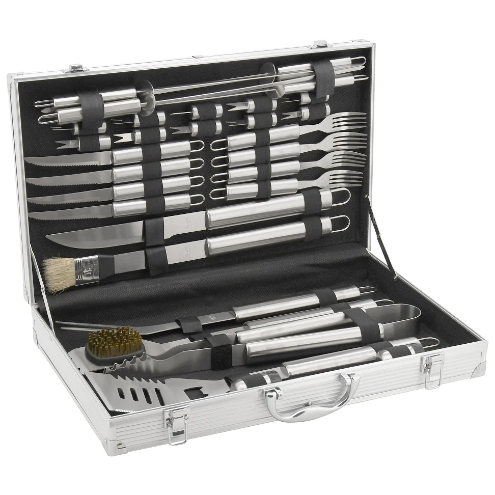 Haga realidad todos los deseos de sus invitados. Con el juego de herramientas para asar Cattara 30 piezas en un estuche de aluminio, realmente puedes preparar cada delicia y luego limpiar la parrilla.