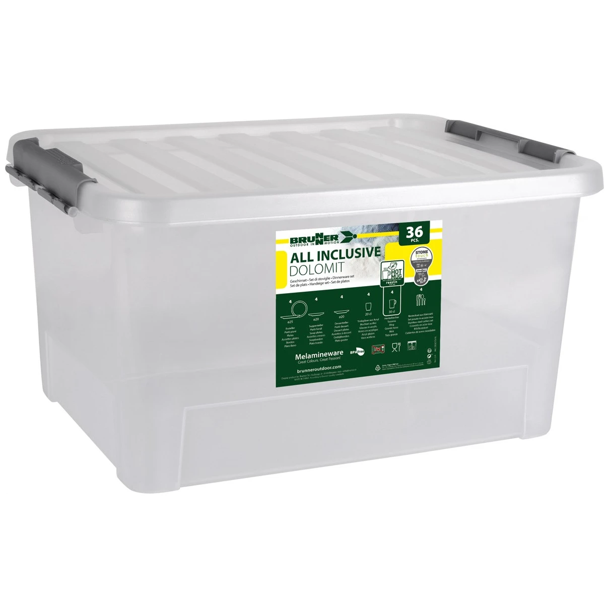 El set de vajilla All Inclusive Dolomit rosa de la marca Brunner es un juego de 36 piezas altamente duradero y elegante que contiene todo lo necesario para una experiencia de camping perfecta.