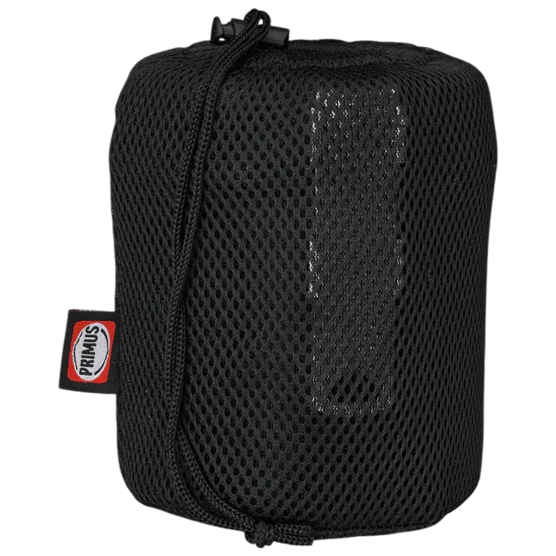 Para un fácil almacenamiento, se incluye una bolsa de malla, en la que se guardan los utensilios. El set encaja perfectamente, lo que ahorra espacio en la mochila y simplifica el transporte. El hornillo ni el gas están incluidos.