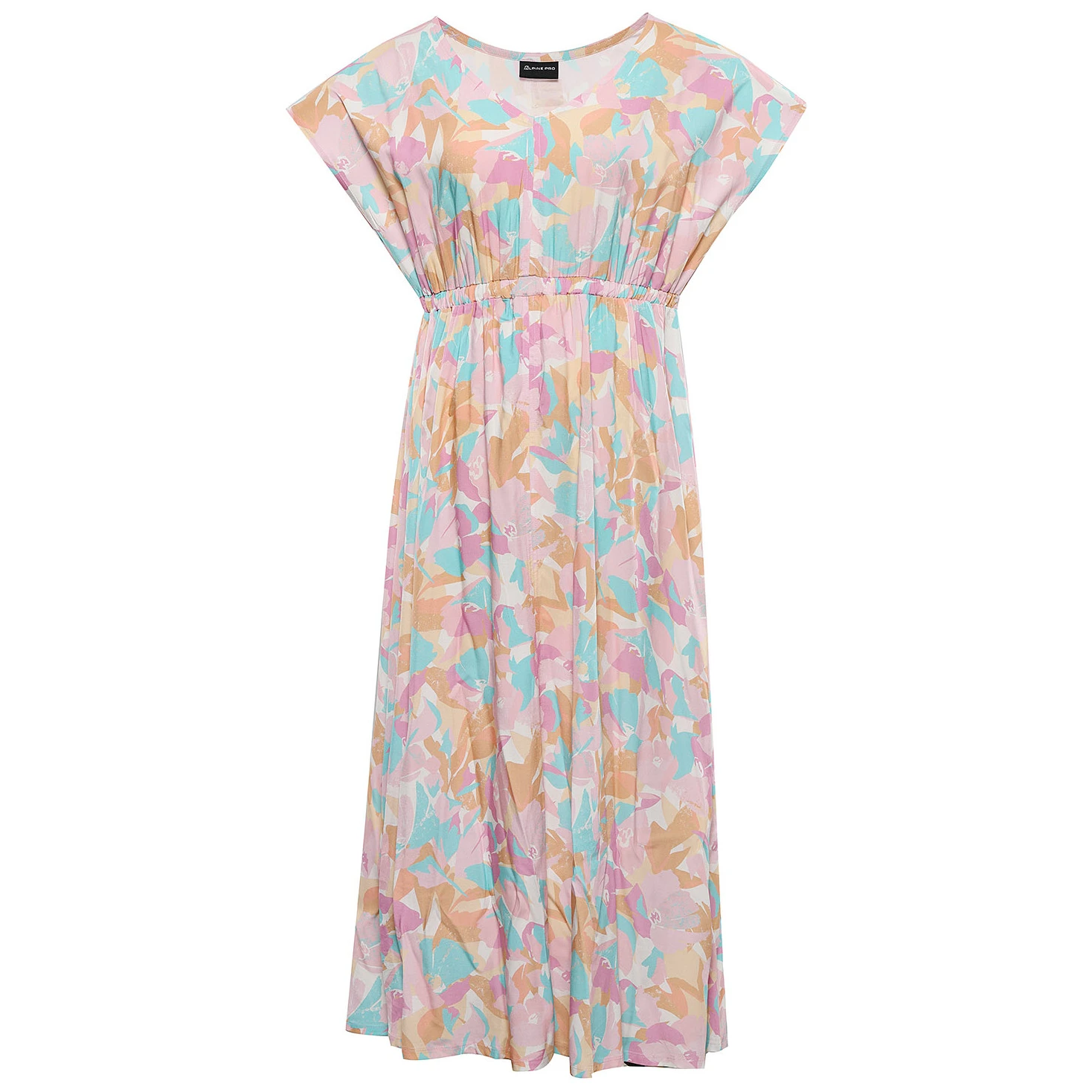 Vestido de verano para mujer Alpine Pro Niewa de viscosa transpirable. El corte holgado con falda larga y aberturas garantiza comodidad durante todo el día en la ciudad, en viajes y en paseos.