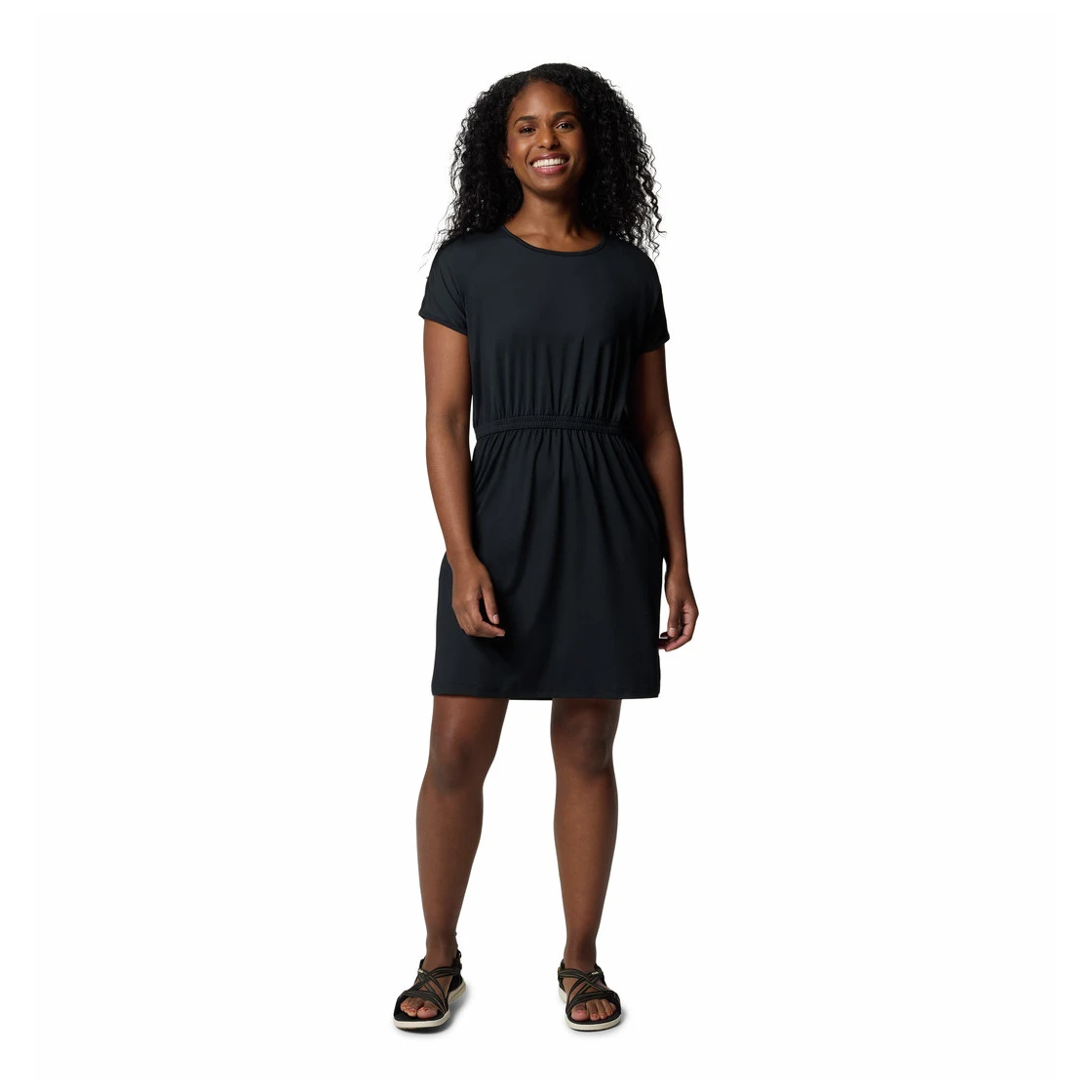 El vestido de manga corta Chill River™ Columbia impresiona con la tecnología Omni-Freeze™ y Omni-Wick™, una cintura elástica y material de secado rápido.